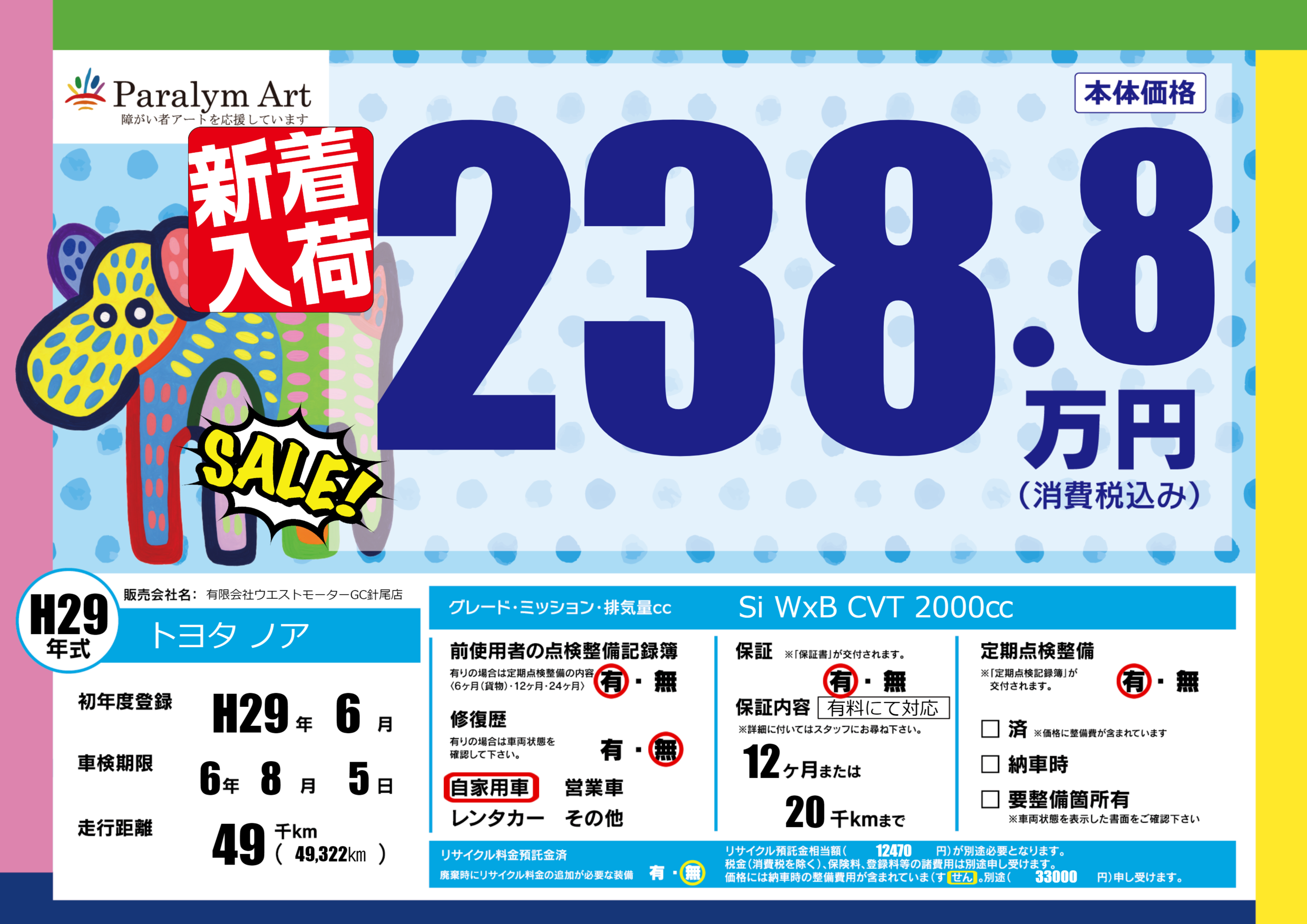 | 走行キロ | 4.9万km | 初年度登録 | H29年6月 |