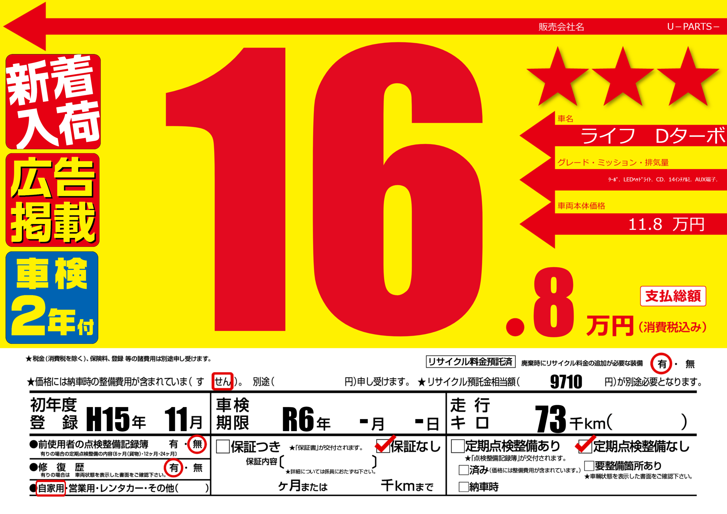| 車名 | ライフ Dターボ | グレード ミッション 排気量 |