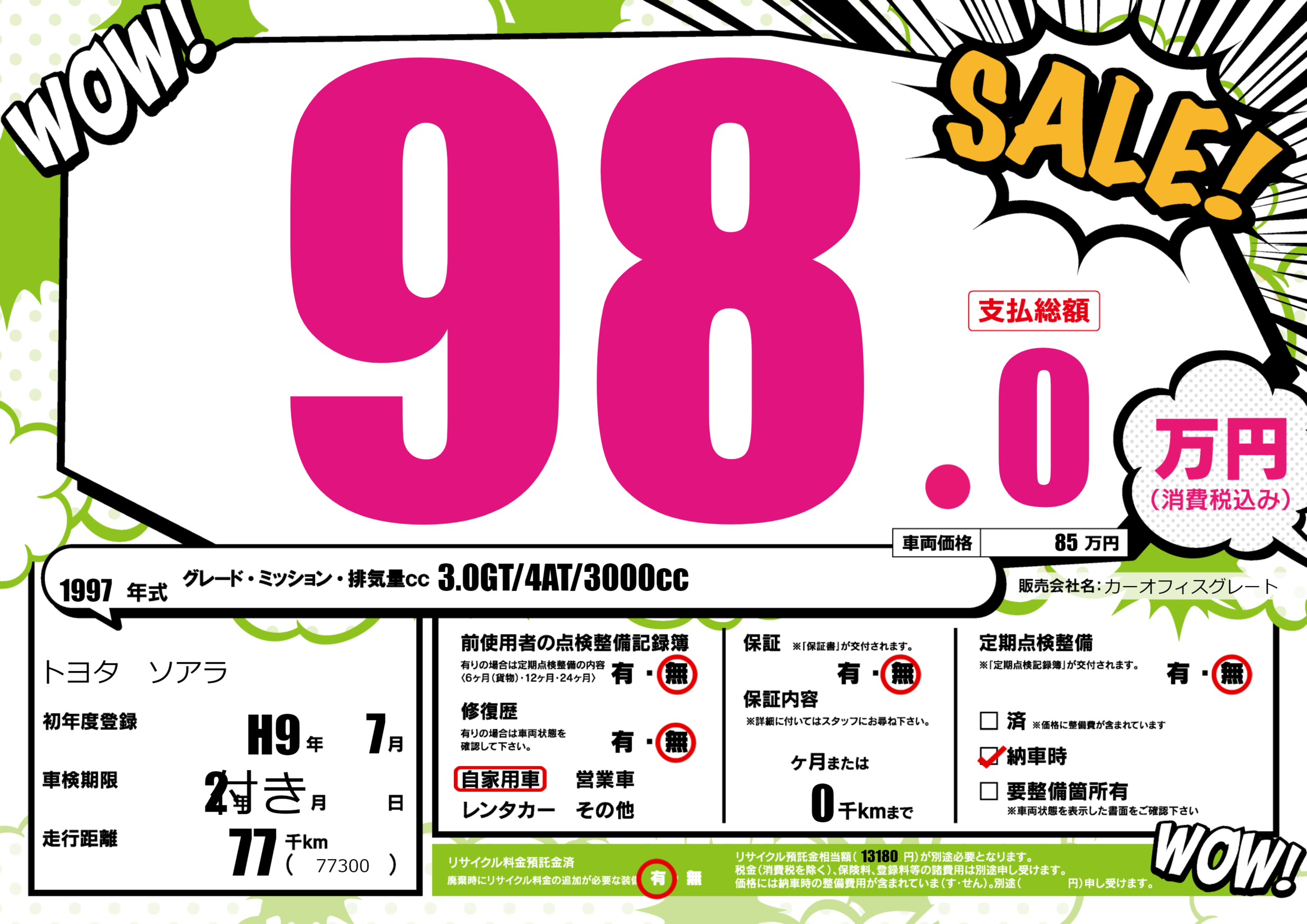 | 車名 | トヨタ ソアラ | グレード ミッション 排気量 |