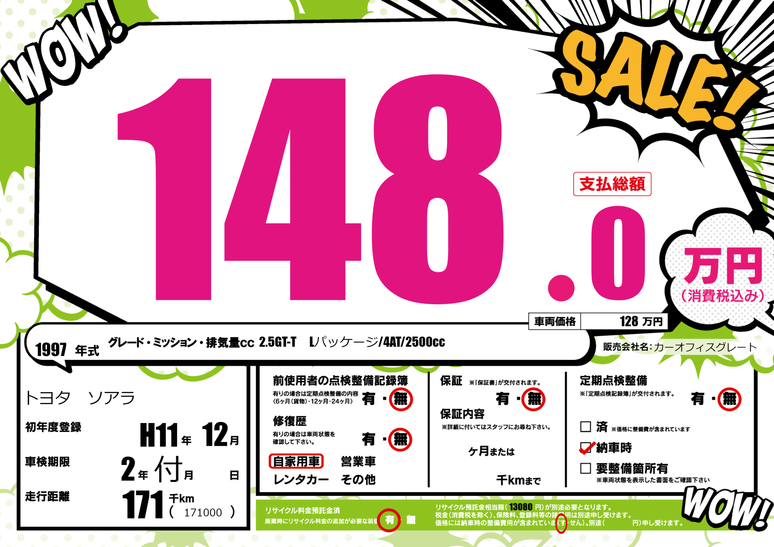 | 車名 | トヨタ ソアラ | グレード ミッション 排気量 |