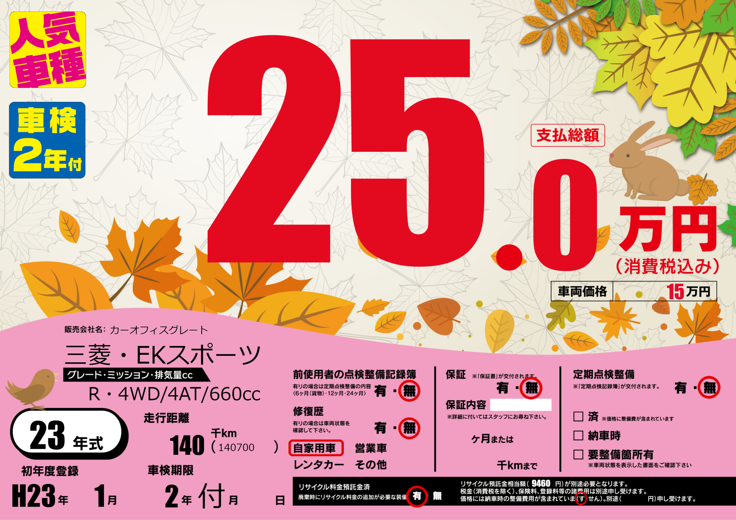 | 車名 | 三菱・EKスポーツ | グレード ミッション 排気量 |