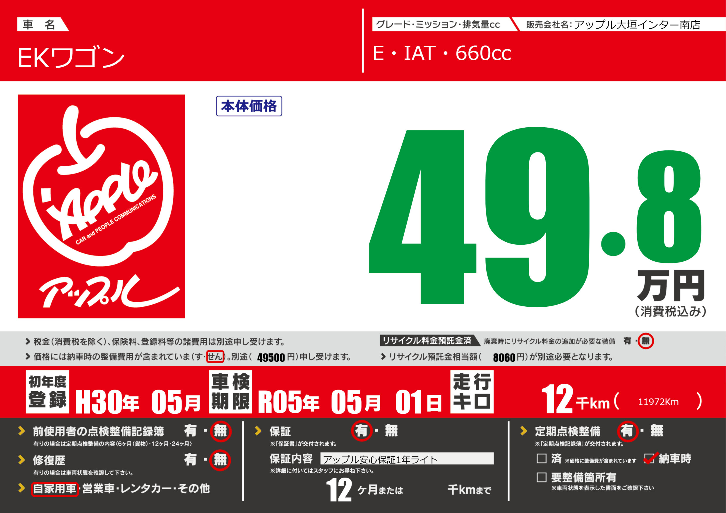 | 車名 | EKワゴン | グレード ミッション 排気量 |