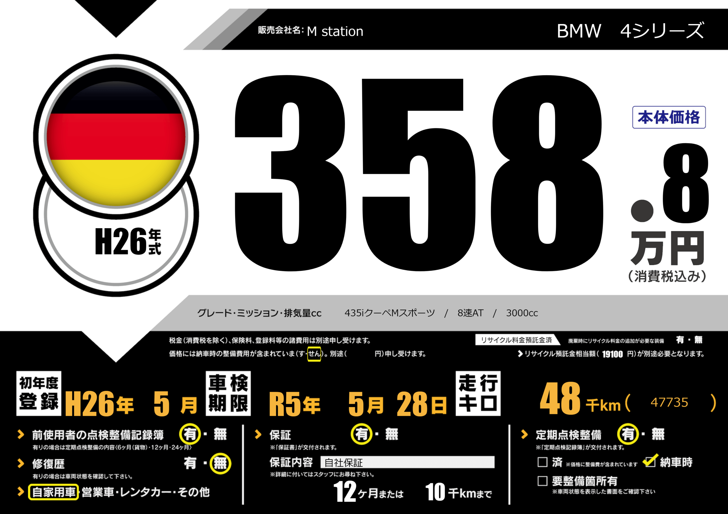 435iクーペMスポーツ / 8速AT / 3000cc |