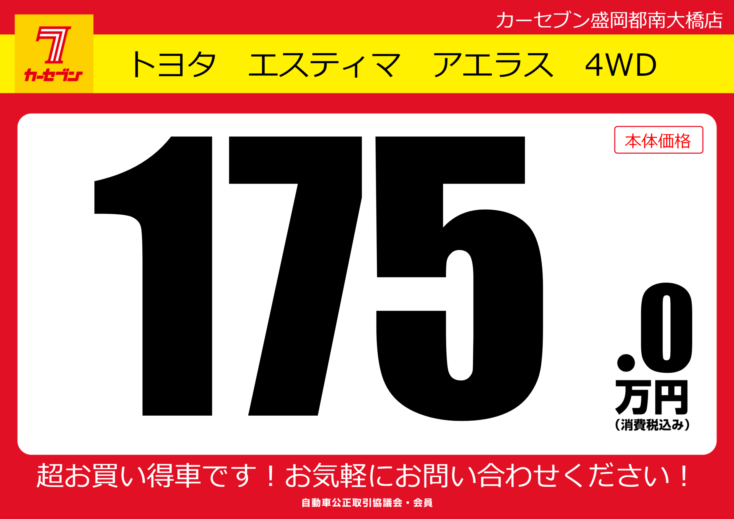 | 車名 | トヨタ エスティマ アエラス 4WD | グレード ミッション 排気量 |