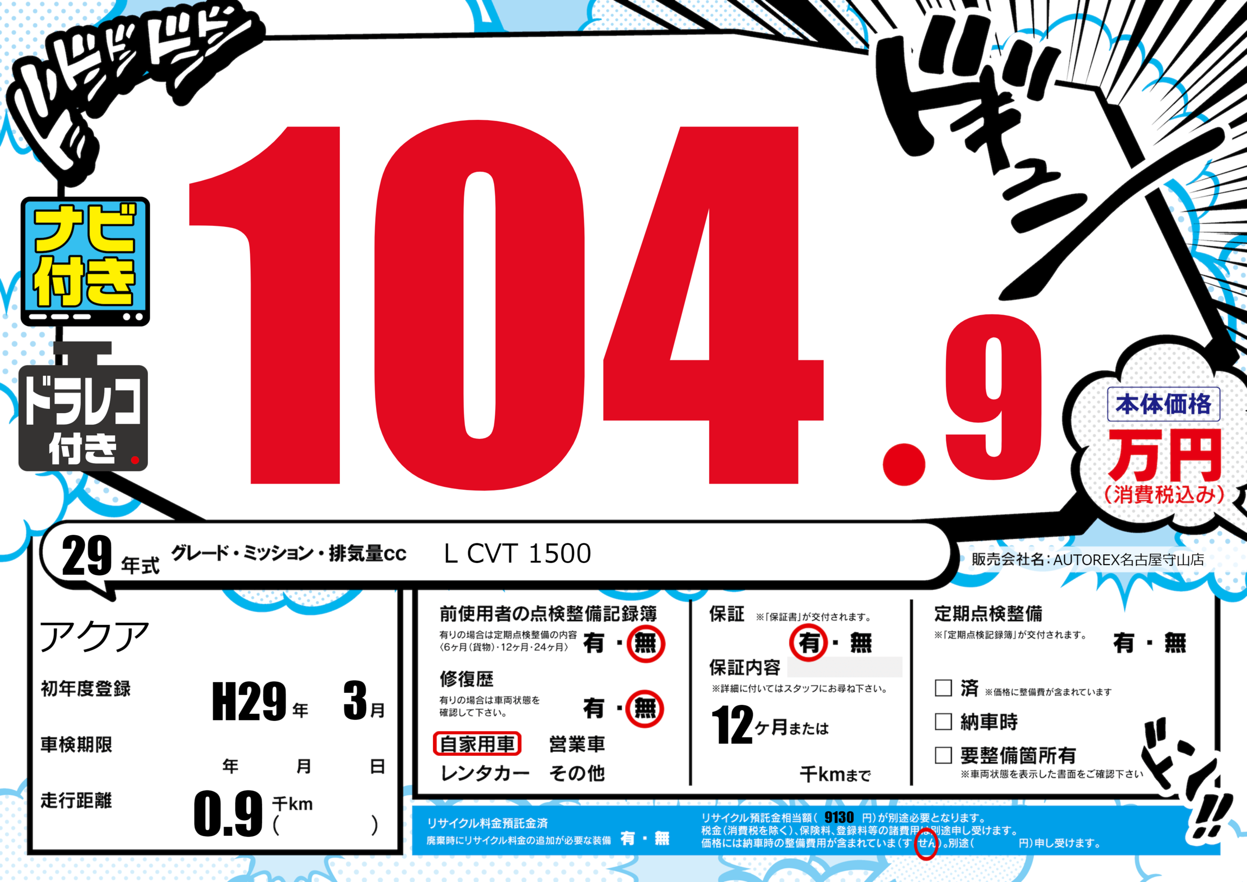 | 走行キロ | - | 初年度登録 | H29年3月 |