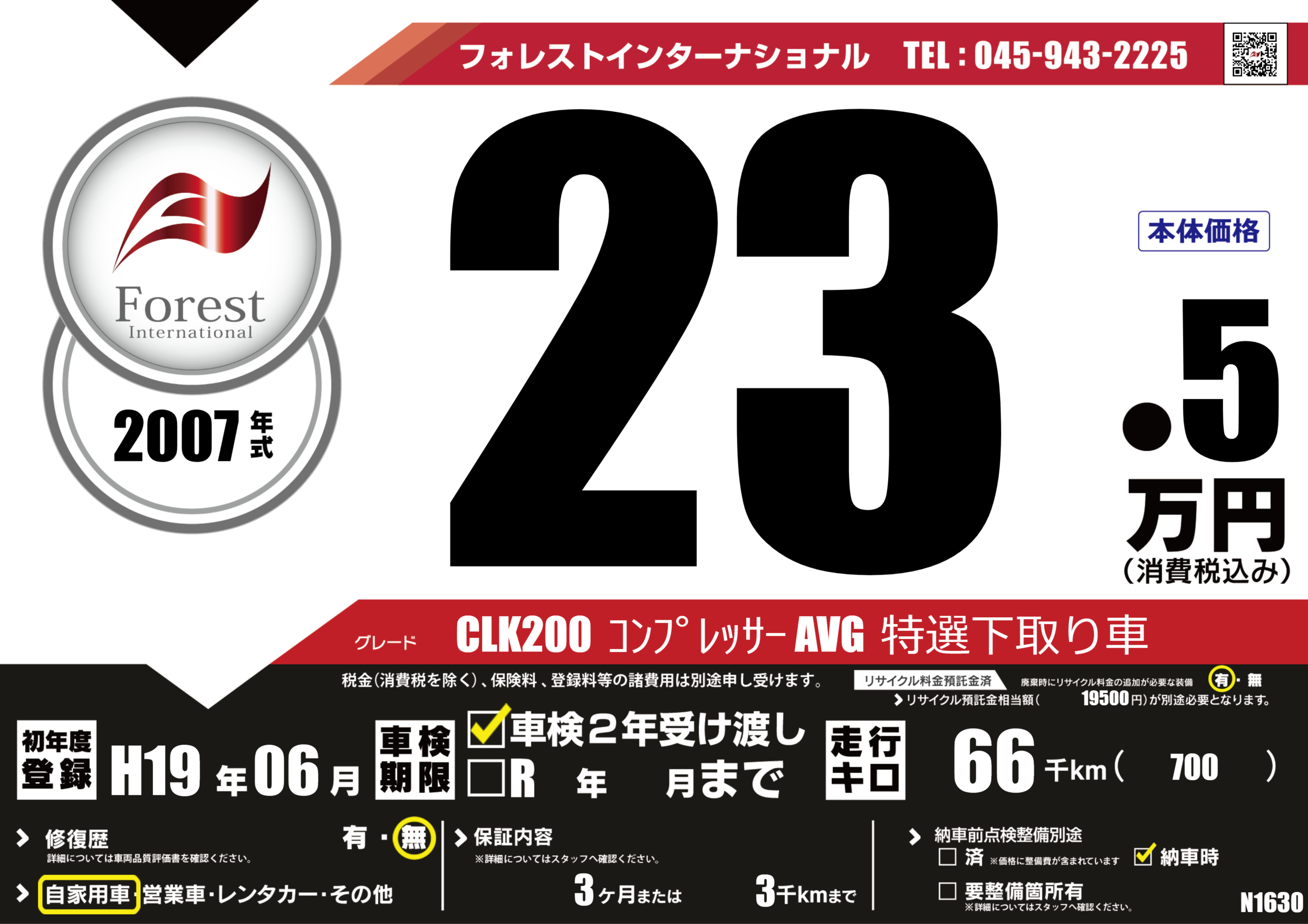 CLK200 コンプレッサー AVG 特選下取り車 |