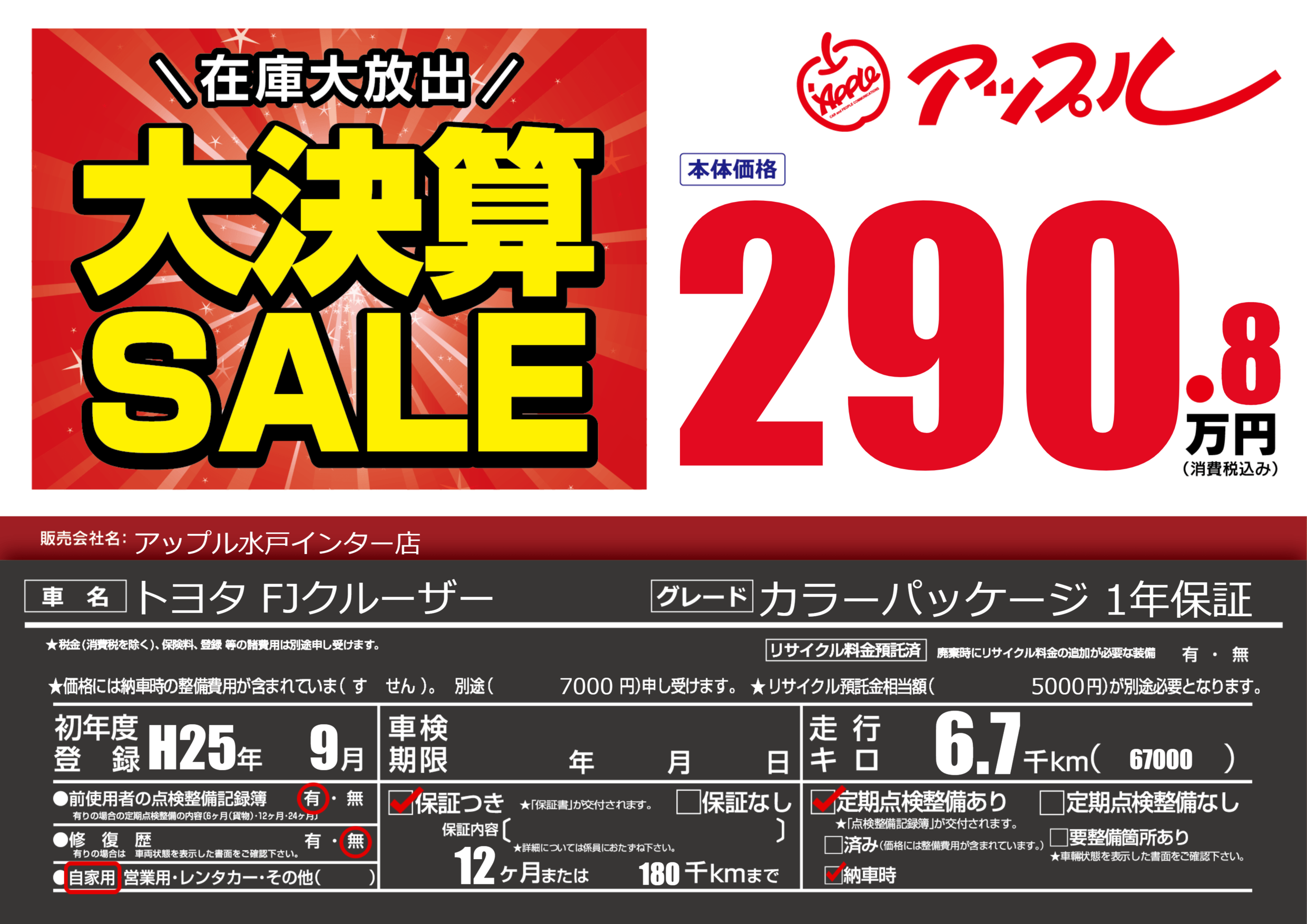 | 初年度登録 | H25年9月 | ||
