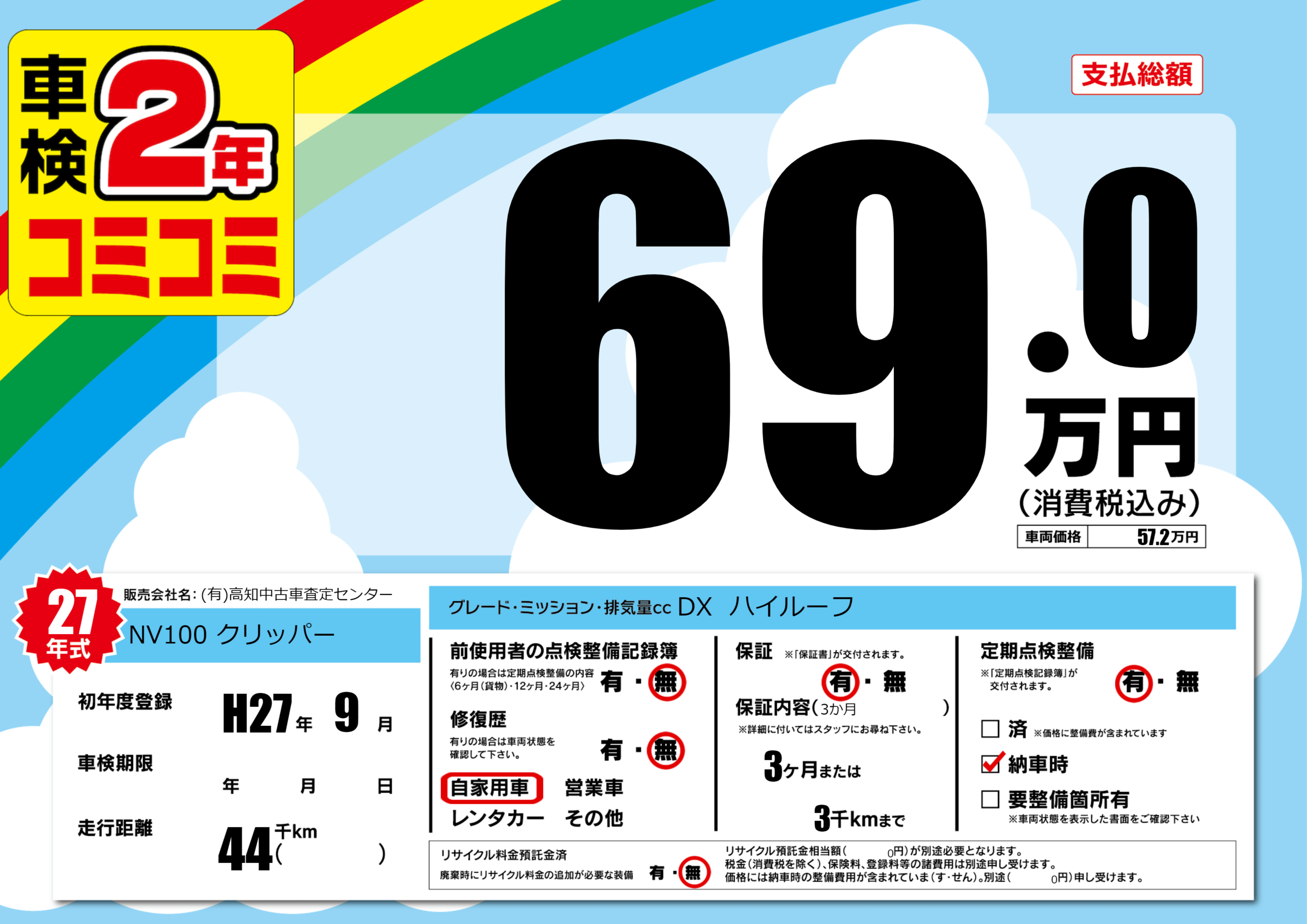 | 定期点検整備 | 定期点検整備あり 納車時あり | ||