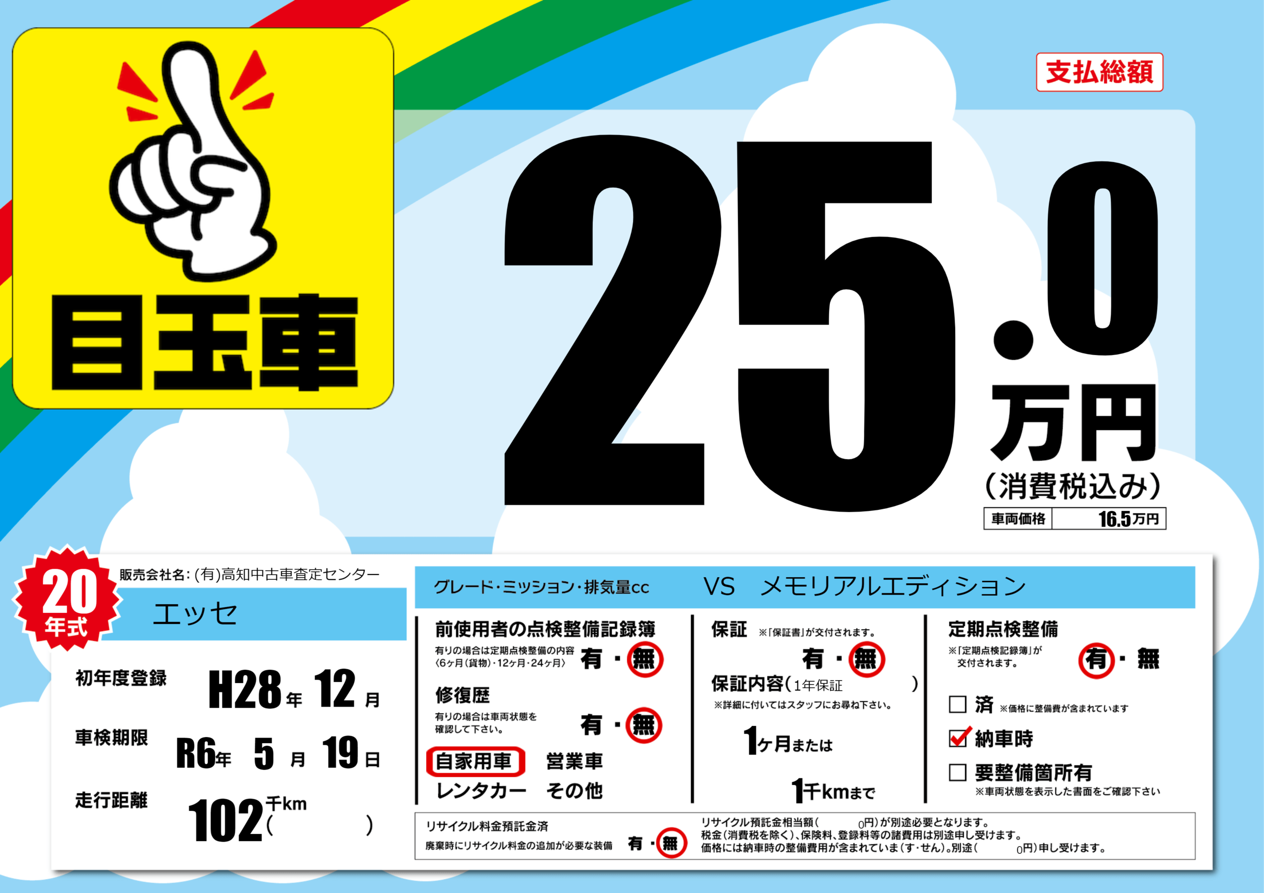 | 車名 | エッセ | グレード ミッション 排気量 |