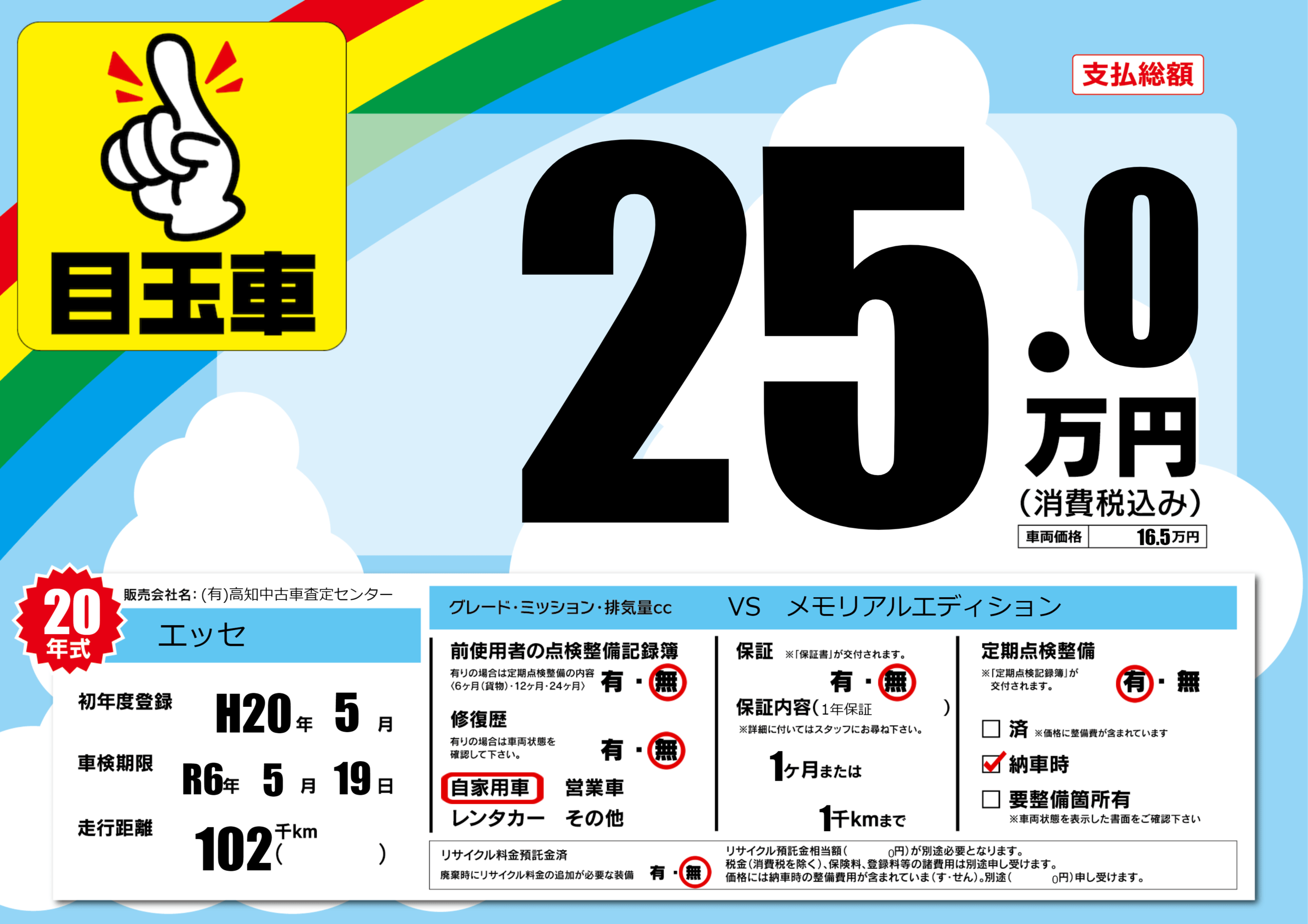 | 車名 | エッセ | グレード ミッション 排気量 |