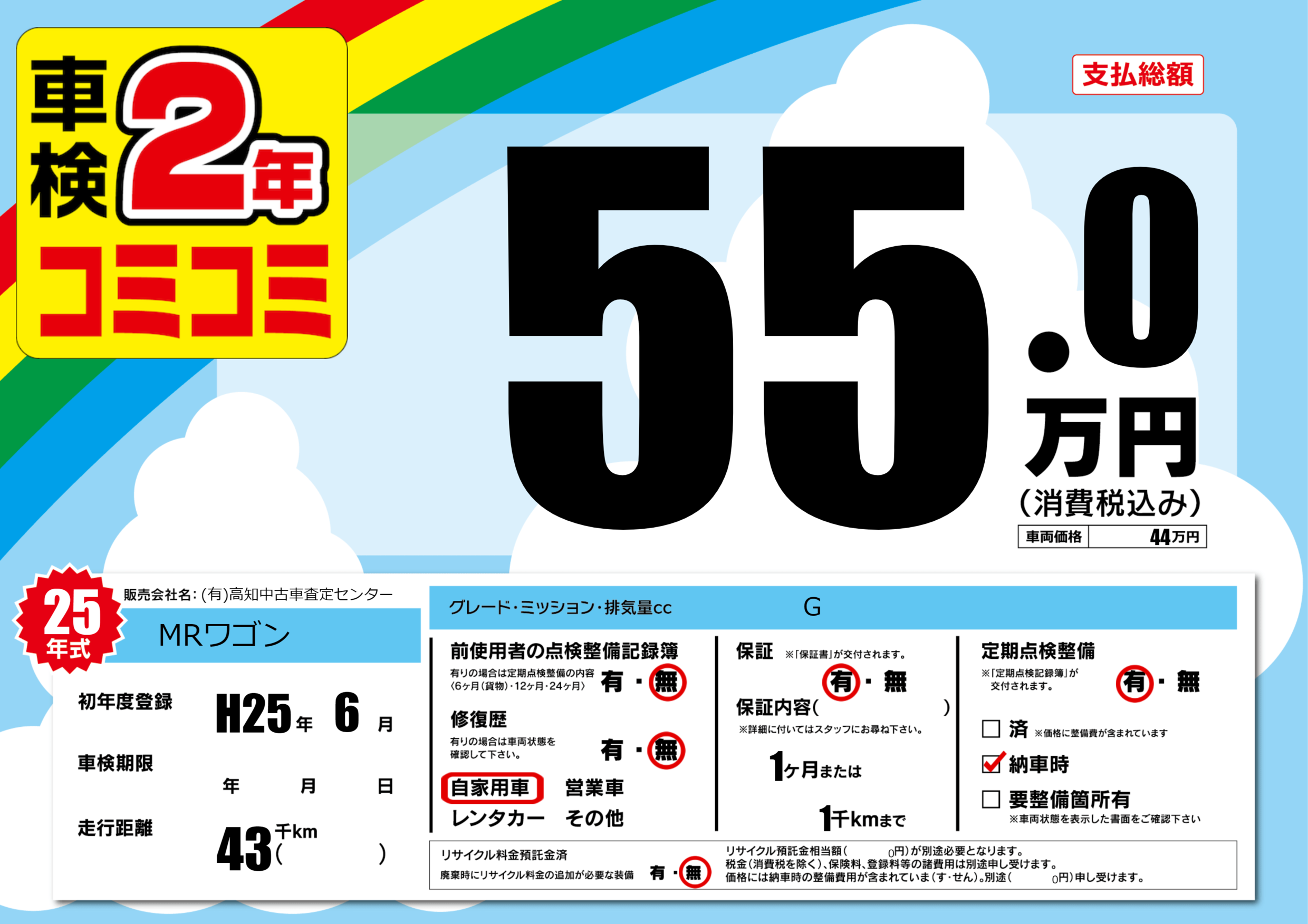 | 車名 | MRワゴン | グレード ミッション 排気量 |