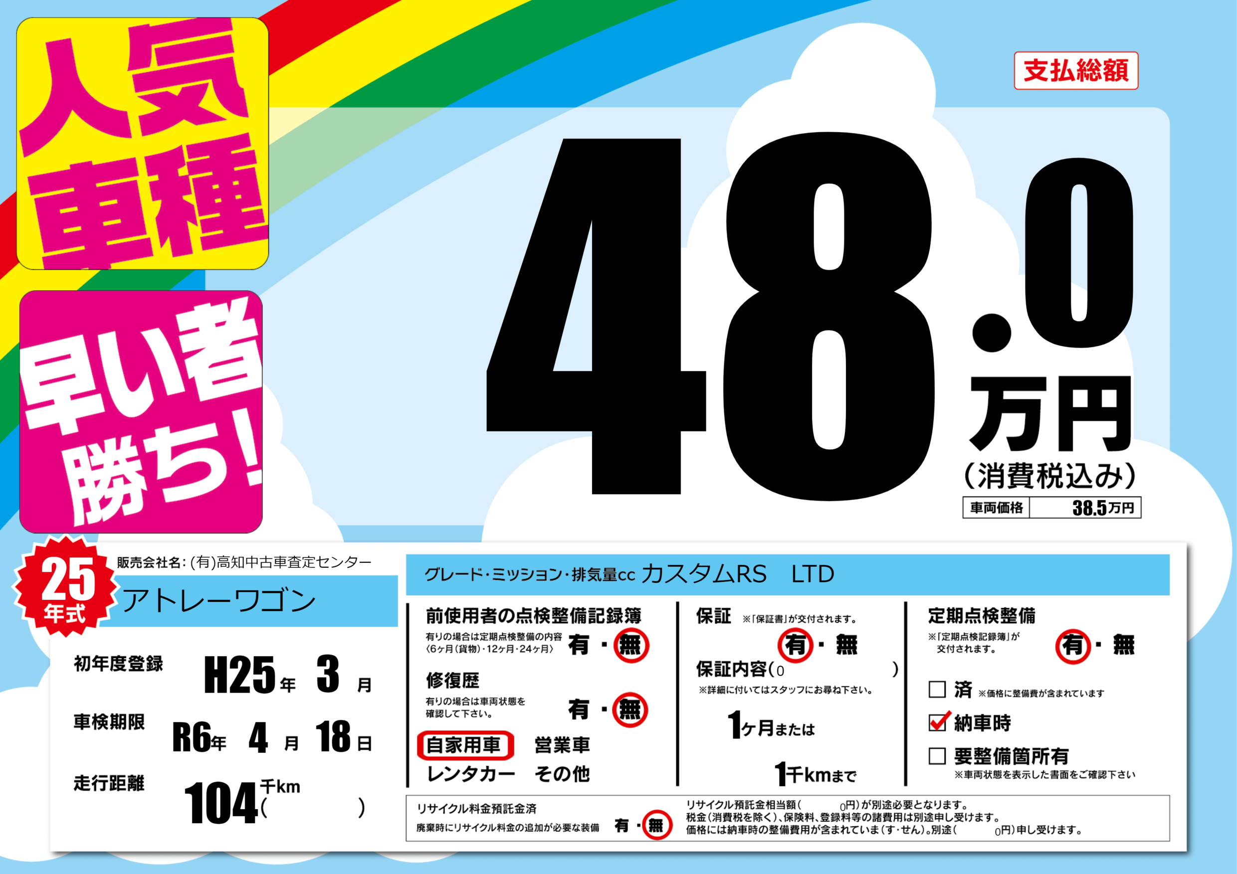 | 車検制限 | R6年 4月 18日 | ||