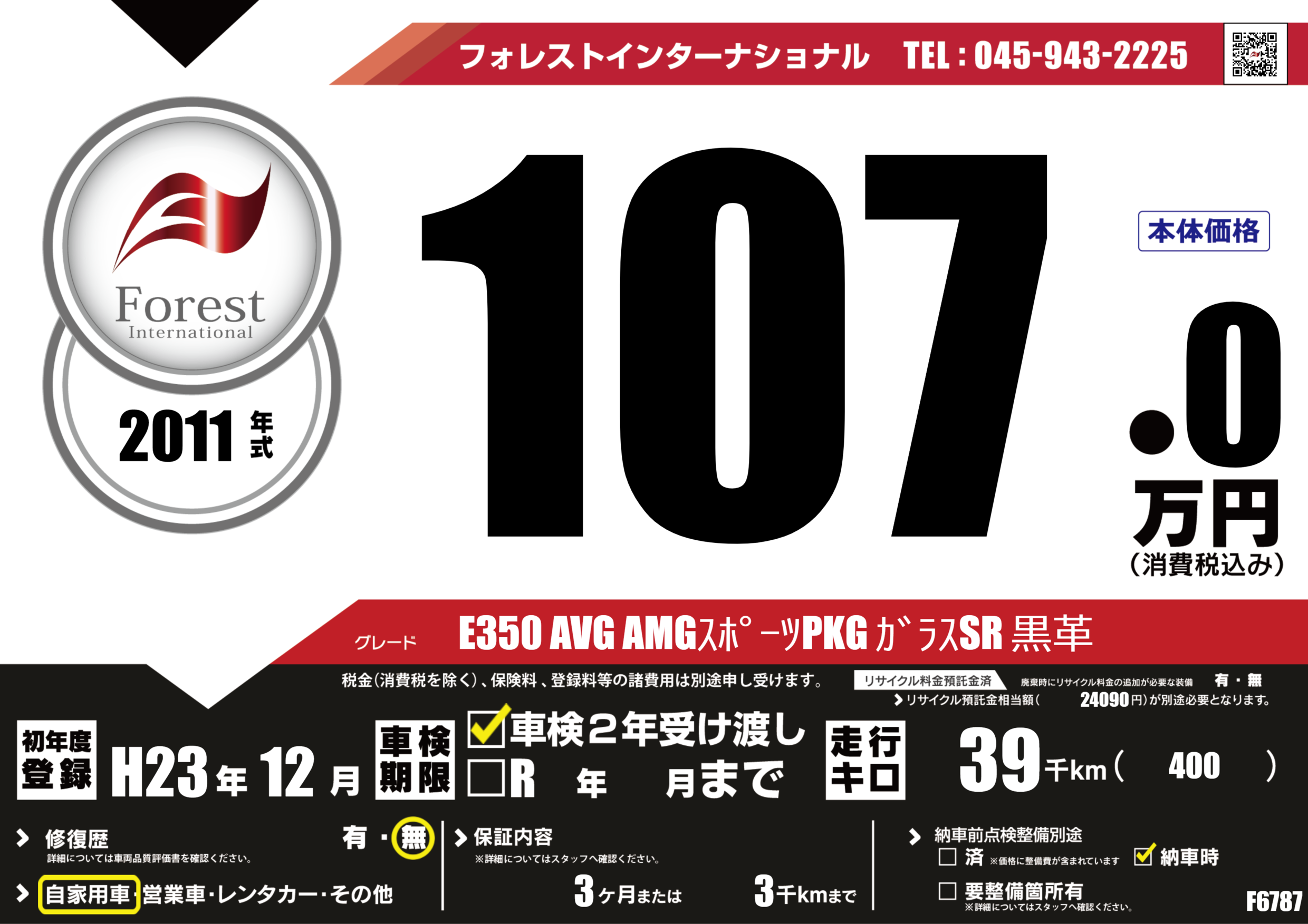 E350 AVG AMGスポーツPKG ガラスSR 黒革 |