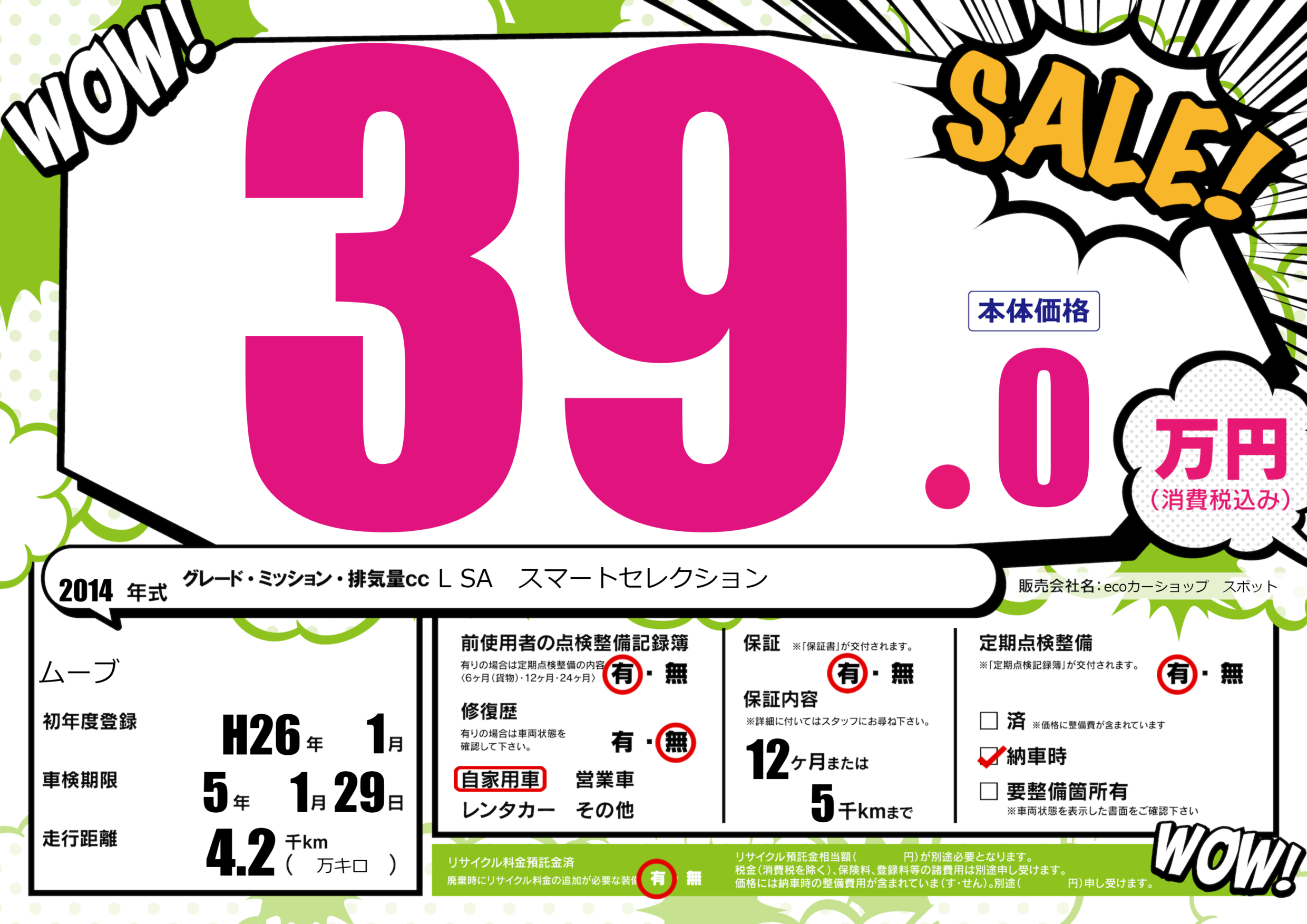 | 初年度登録 | H26年1月 | ||