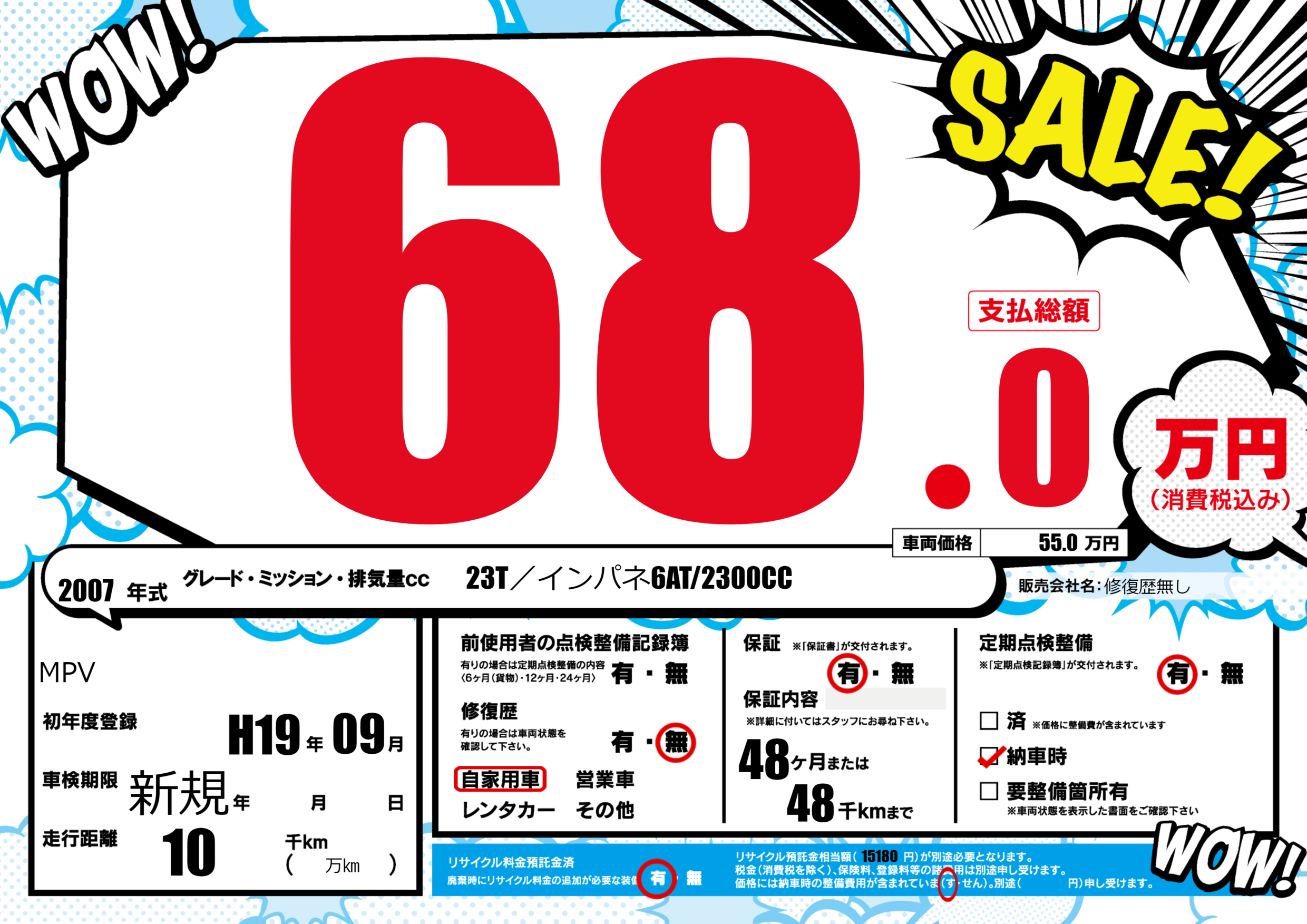 | 納車時の 整備費用 |