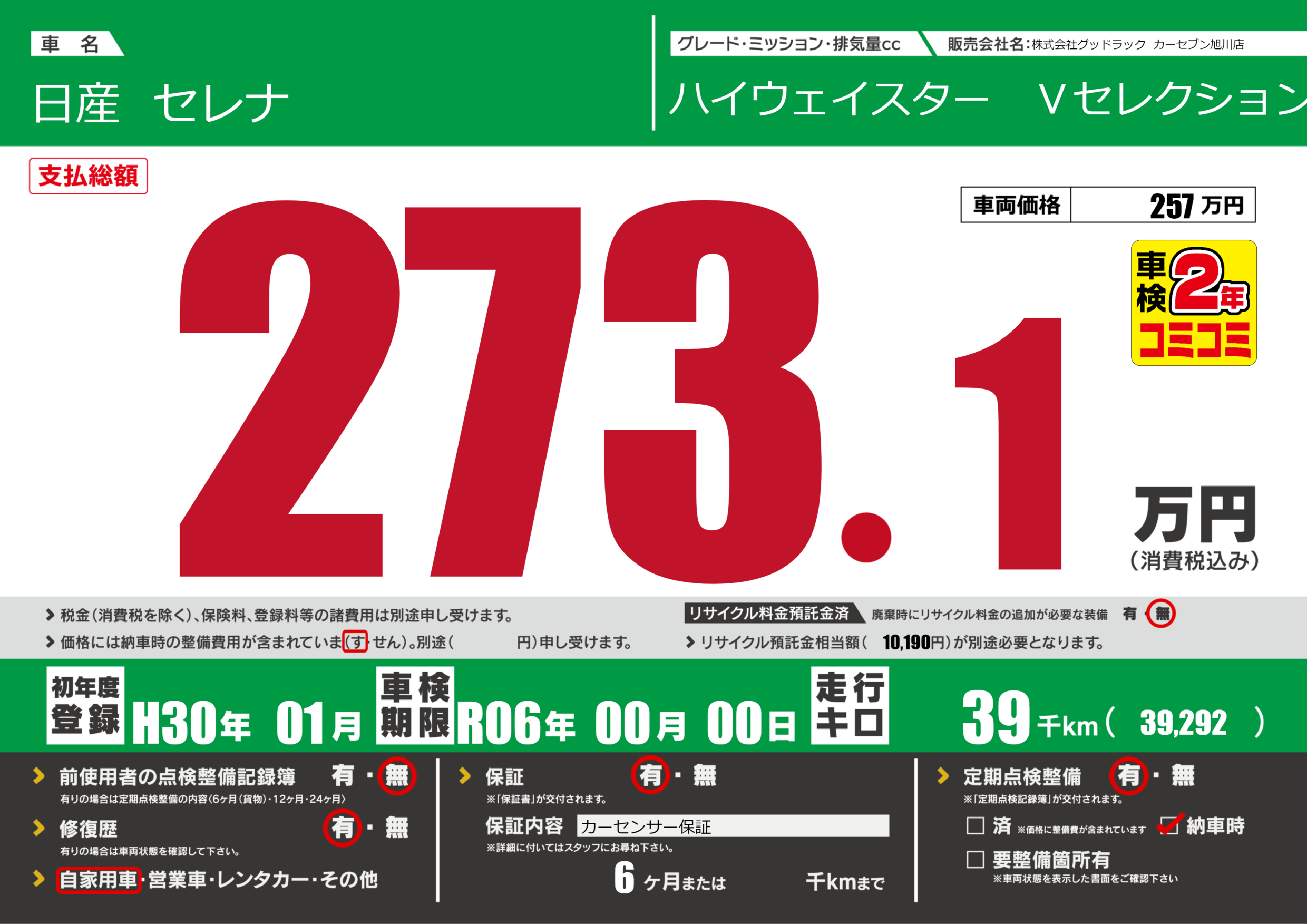 | 車検制限 | R06年 00月 00日 | ||