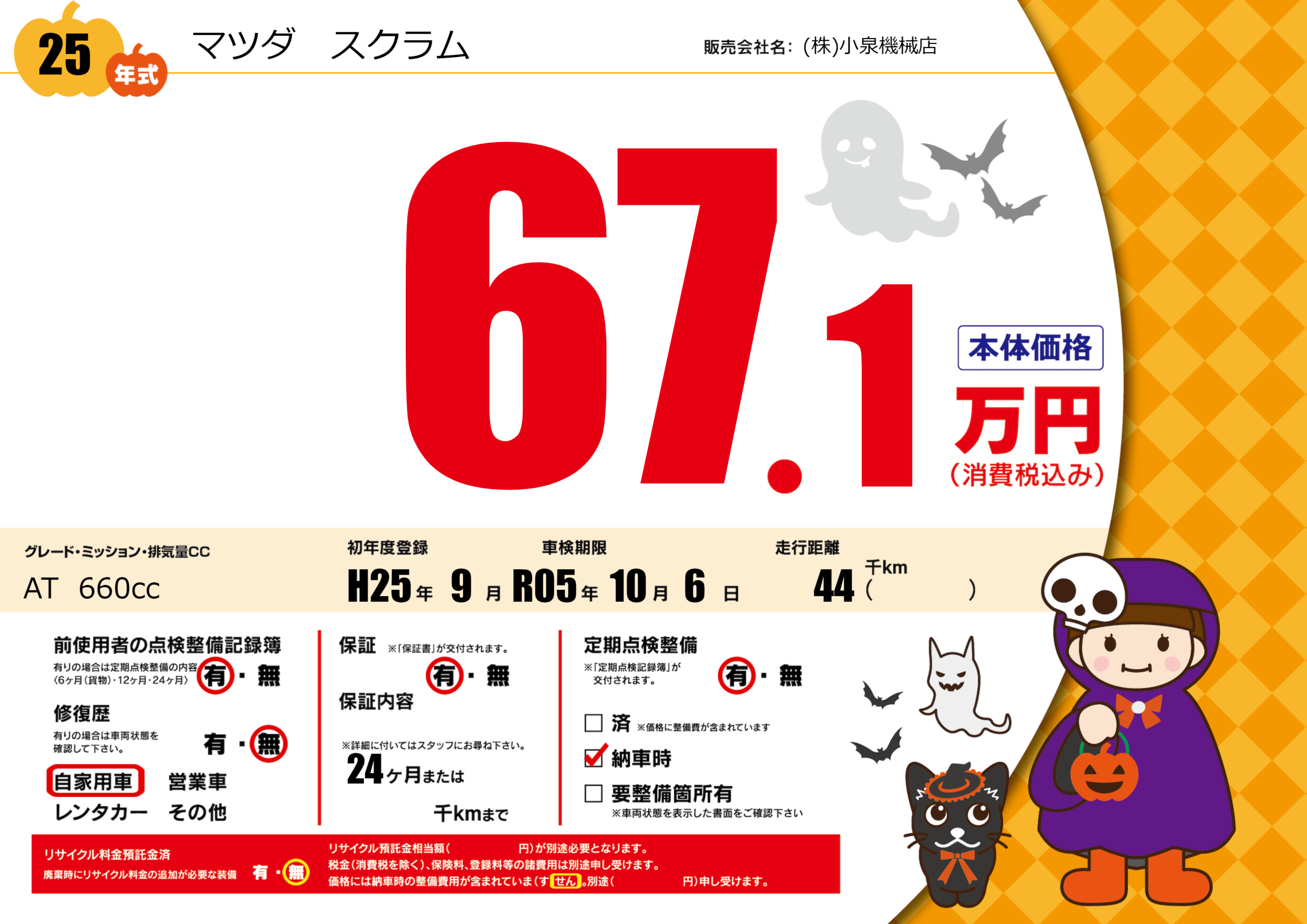 | 車名 | マツダ スクラム | グレード ミッション 排気量 |