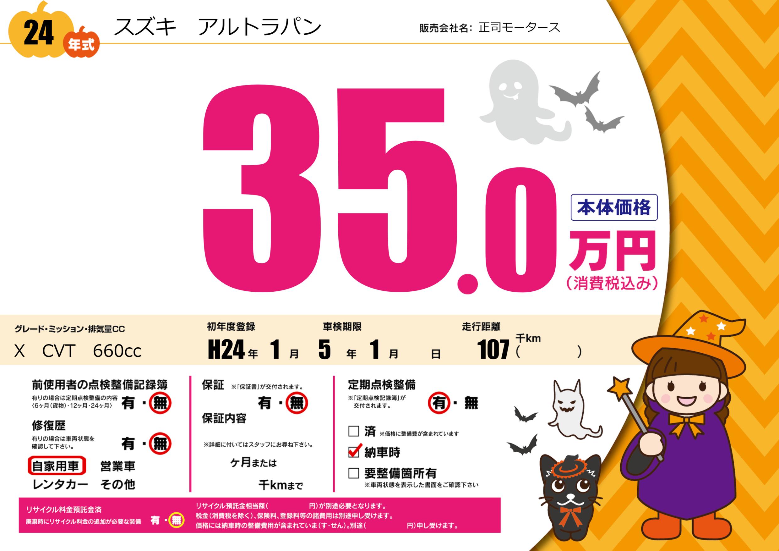 | 走行キロ | 10.7万km | 初年度登録 | H24年1月 |