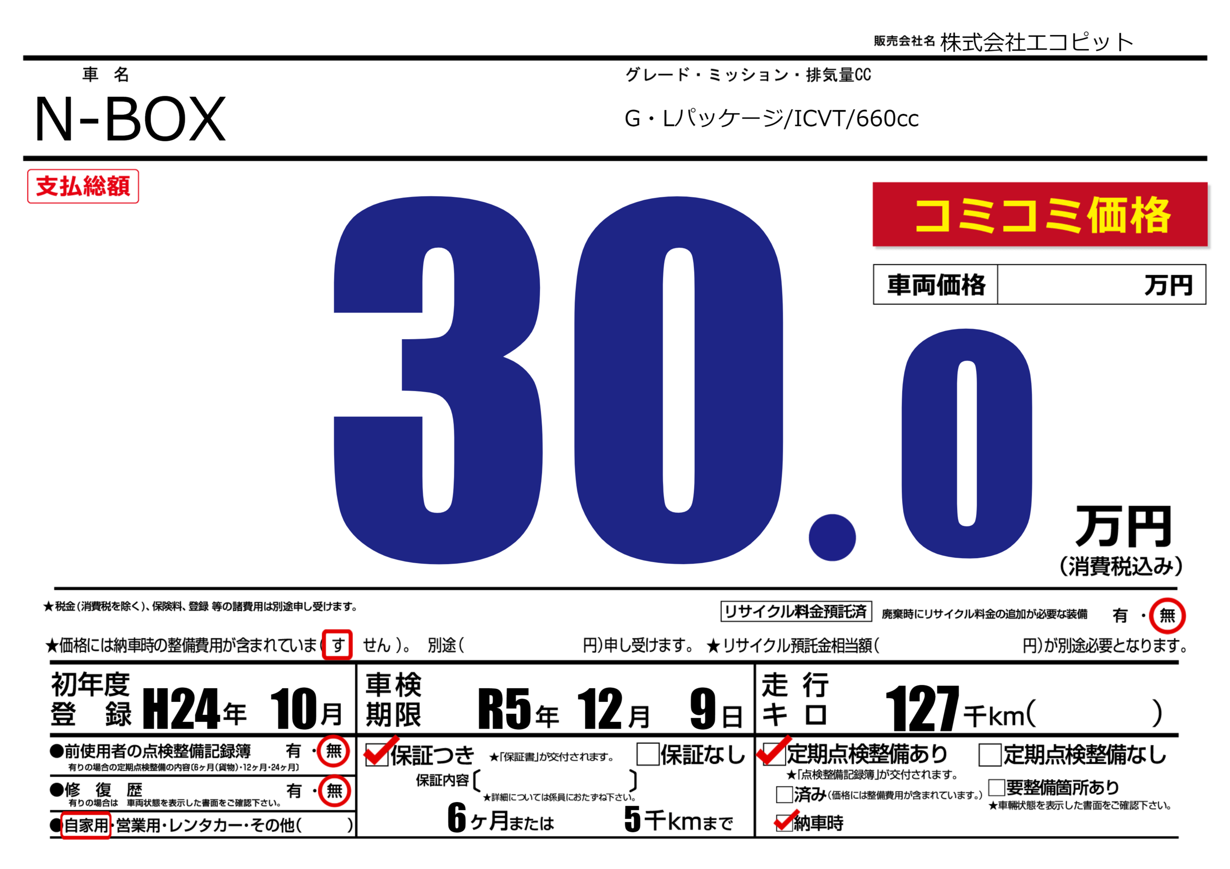 | 車検制限 | R5年 12月 9日 | ||