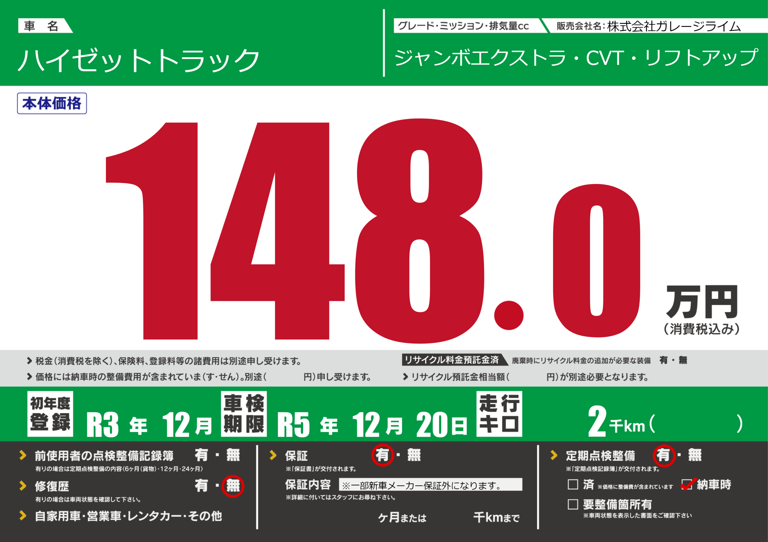 なし | 車検制限 | R5年12月20月 |
