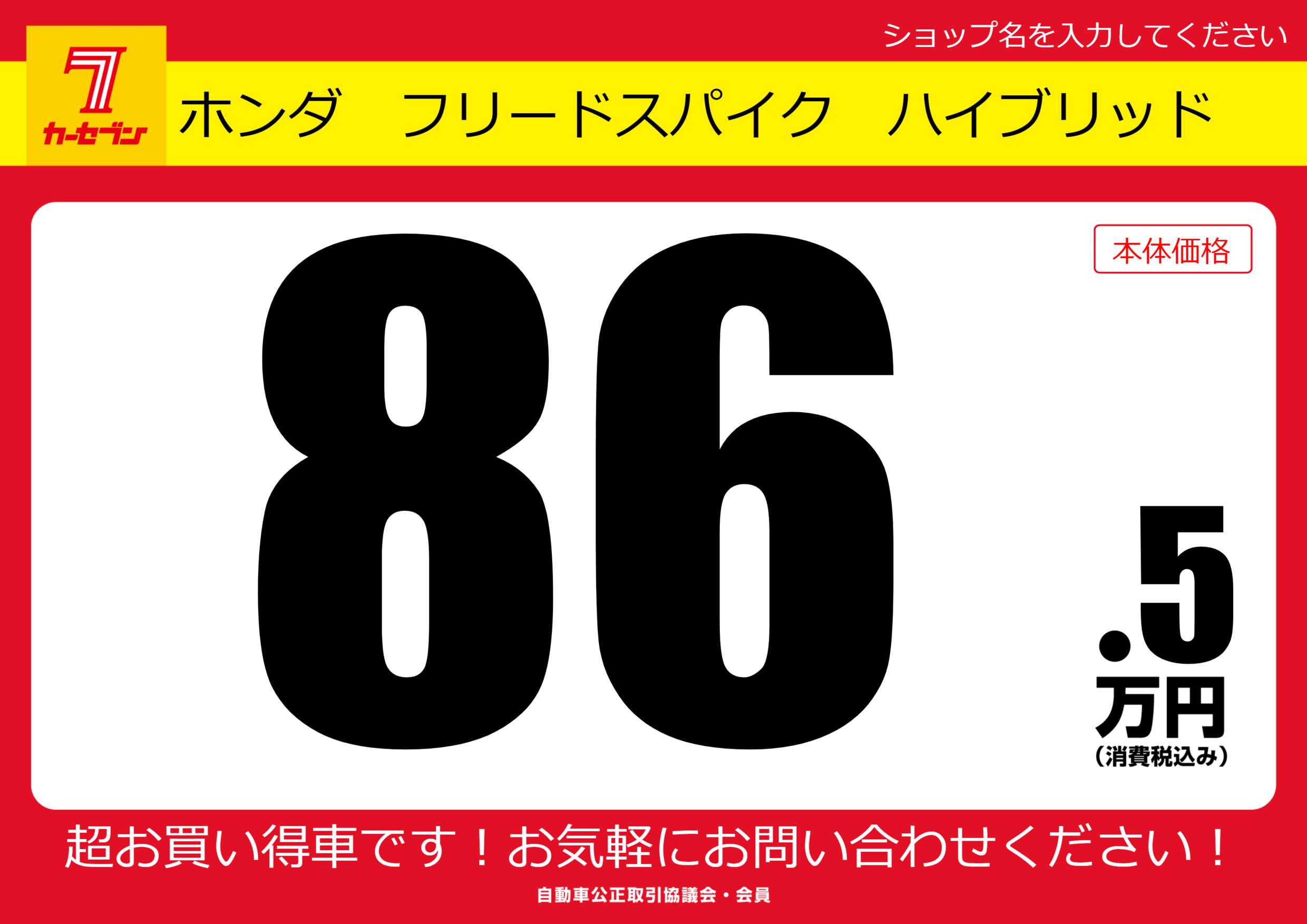 | 車名 | ホンダ フリードスパイク ハイブリッド | グレード ミッション 排気量 |