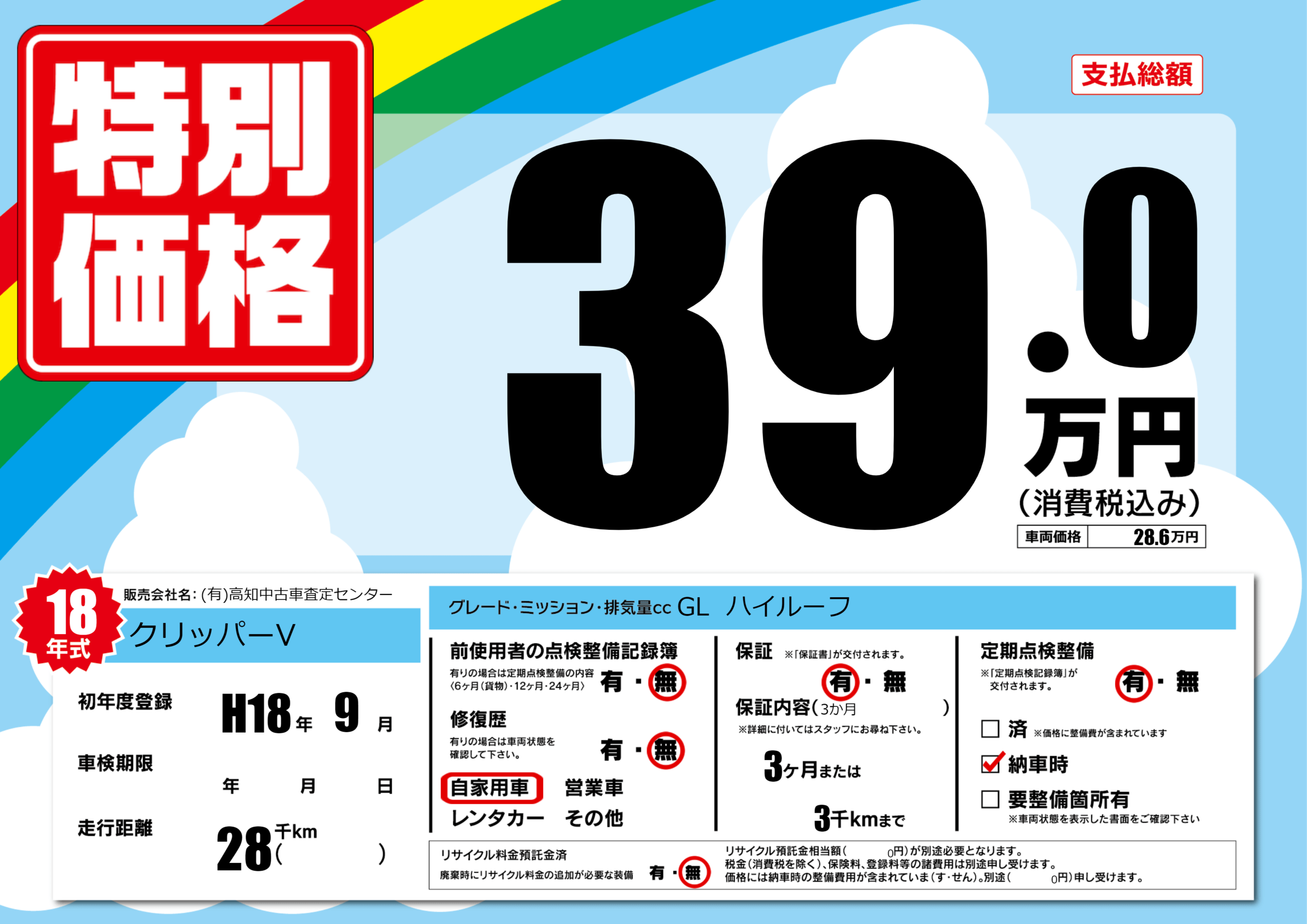| 走行キロ | 2.8万km | 初年度登録 | H18年9月 |