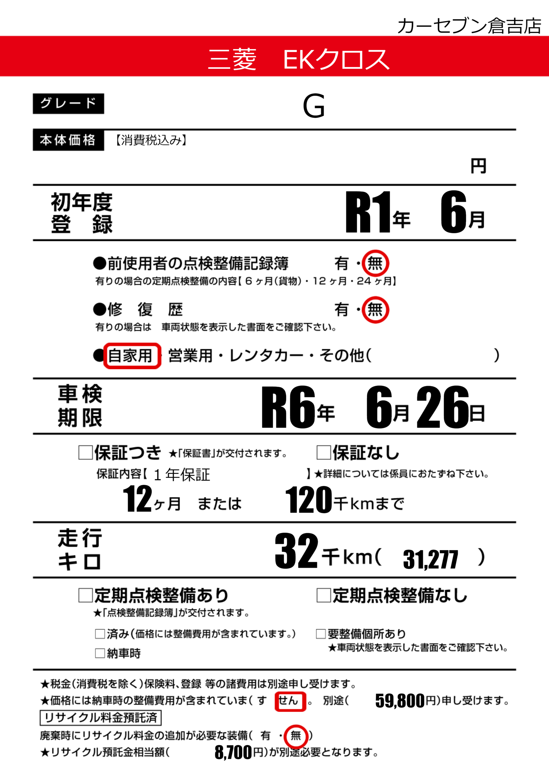 車検制限 | R6年6月26月 |