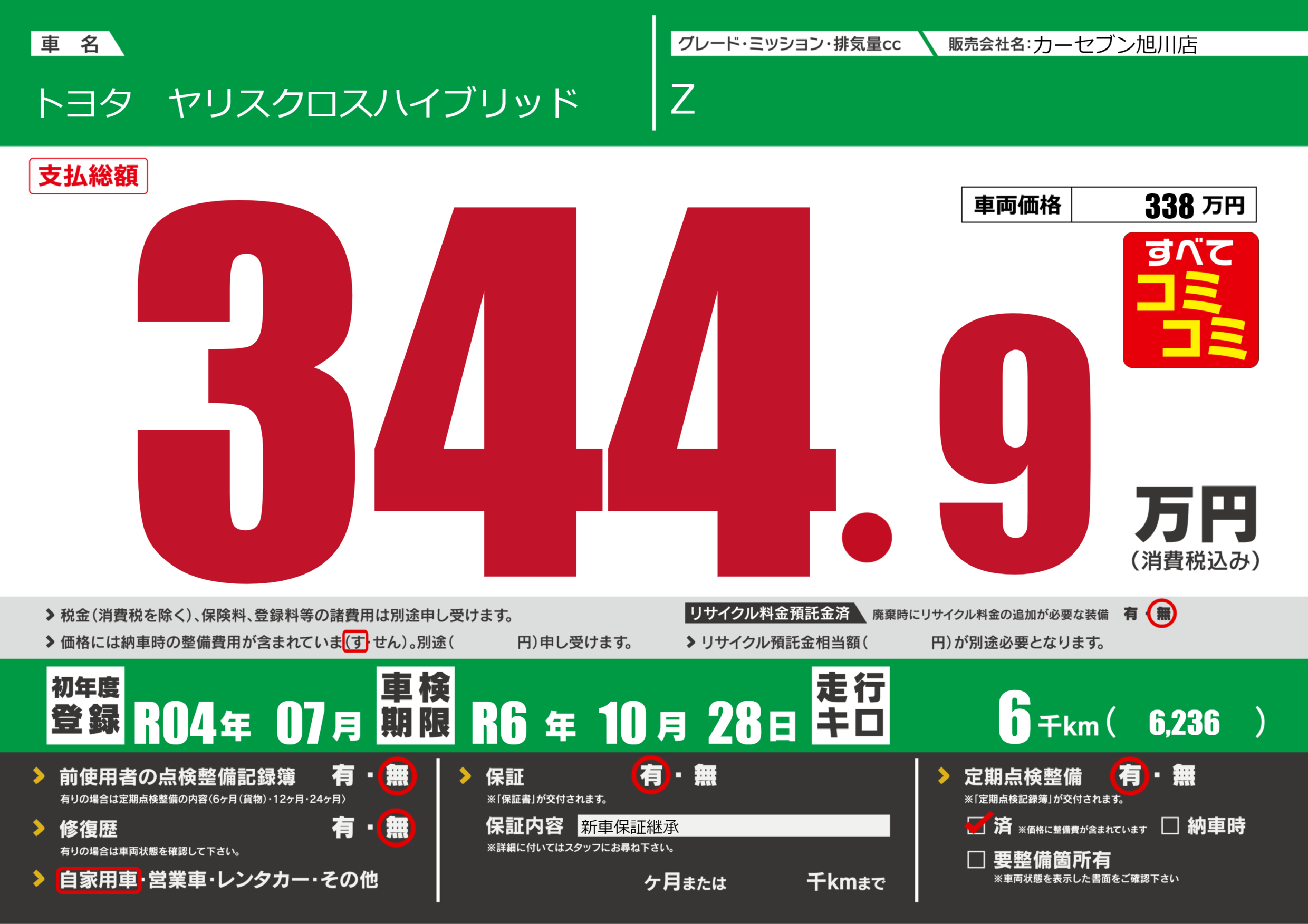 | 定期点検整備 | 定期点検整備あり 定期点検整備済み | ||