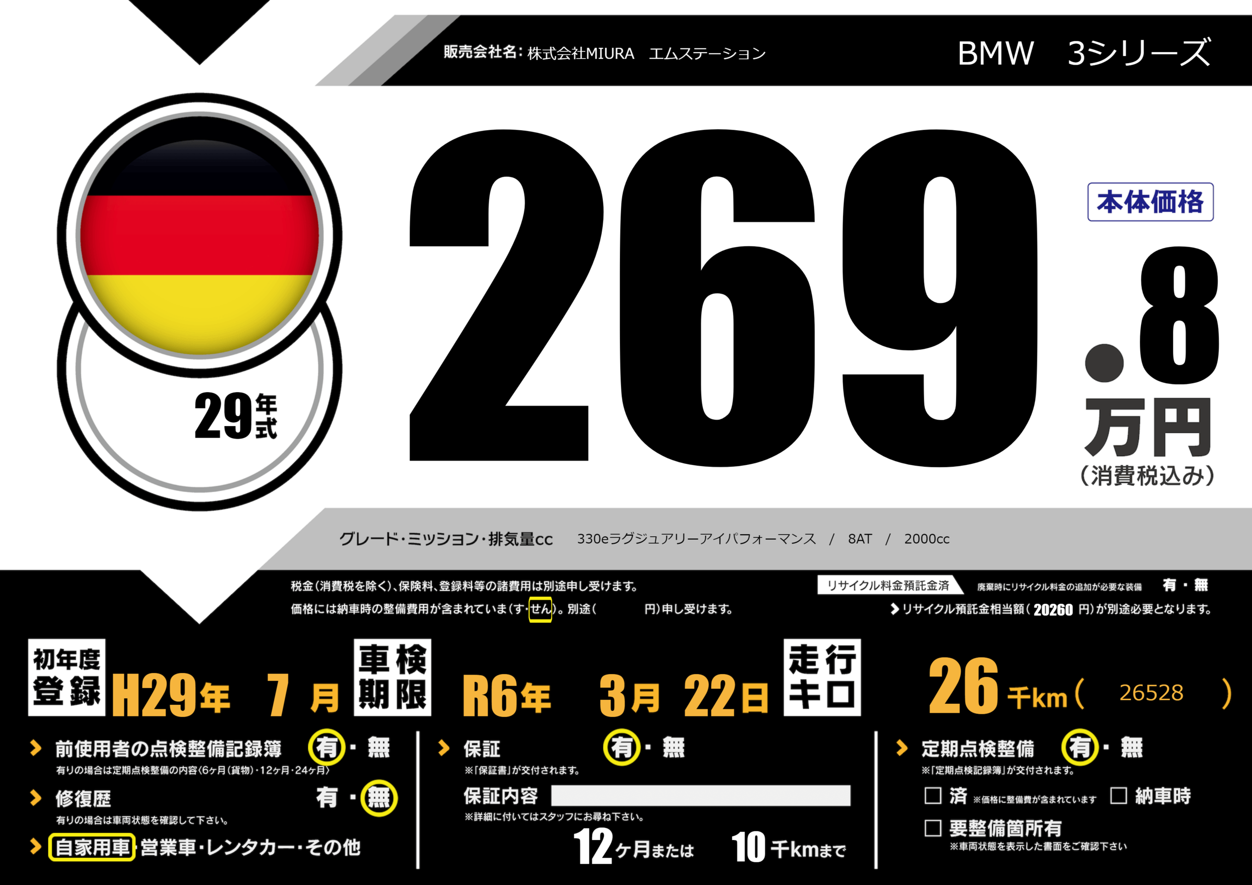保証付き 保証内容(---) 12ヶ月または(10)千kmまで |