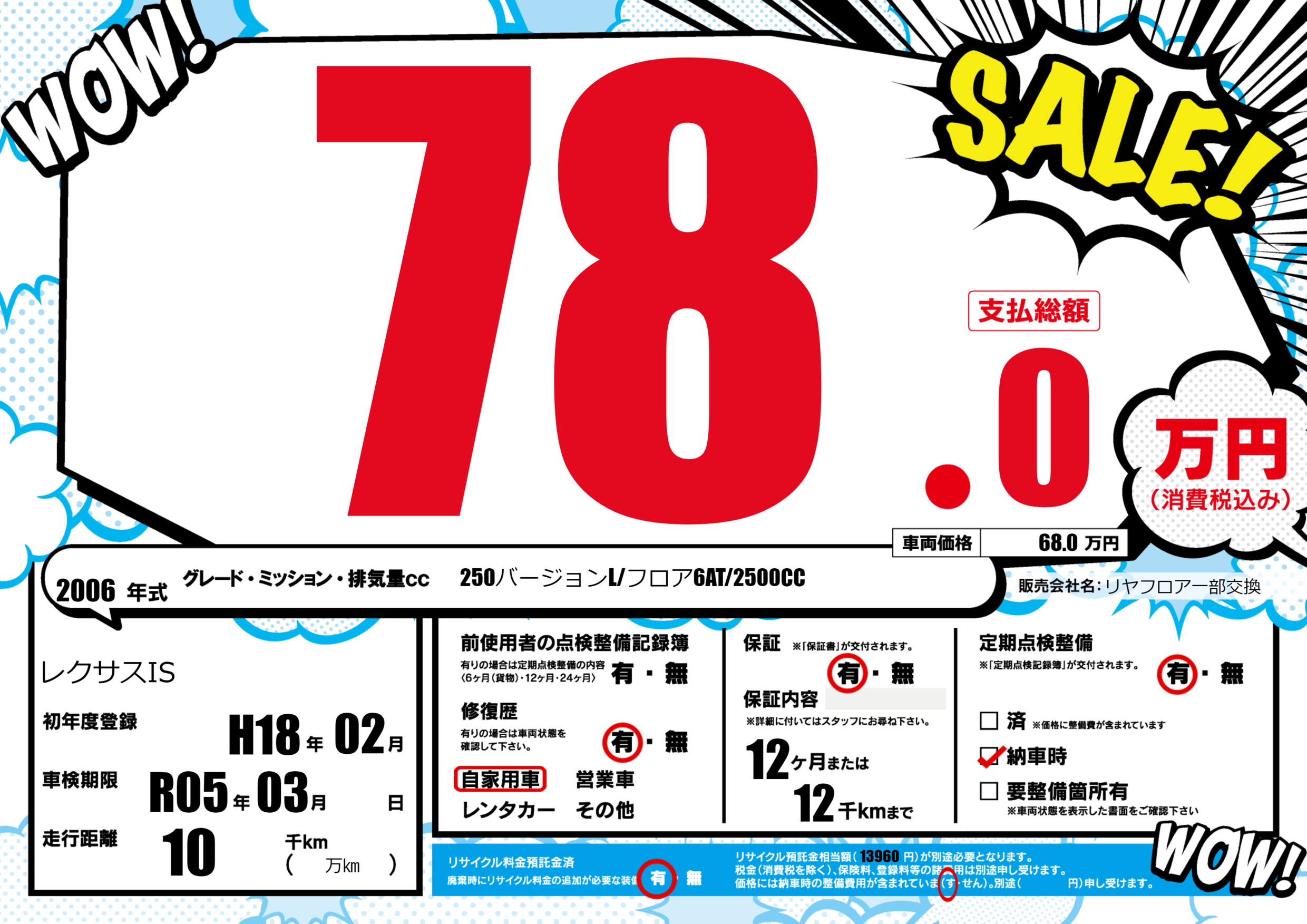 保証付き 保証内容(---) 12ヶ月または(12)千kmまで |