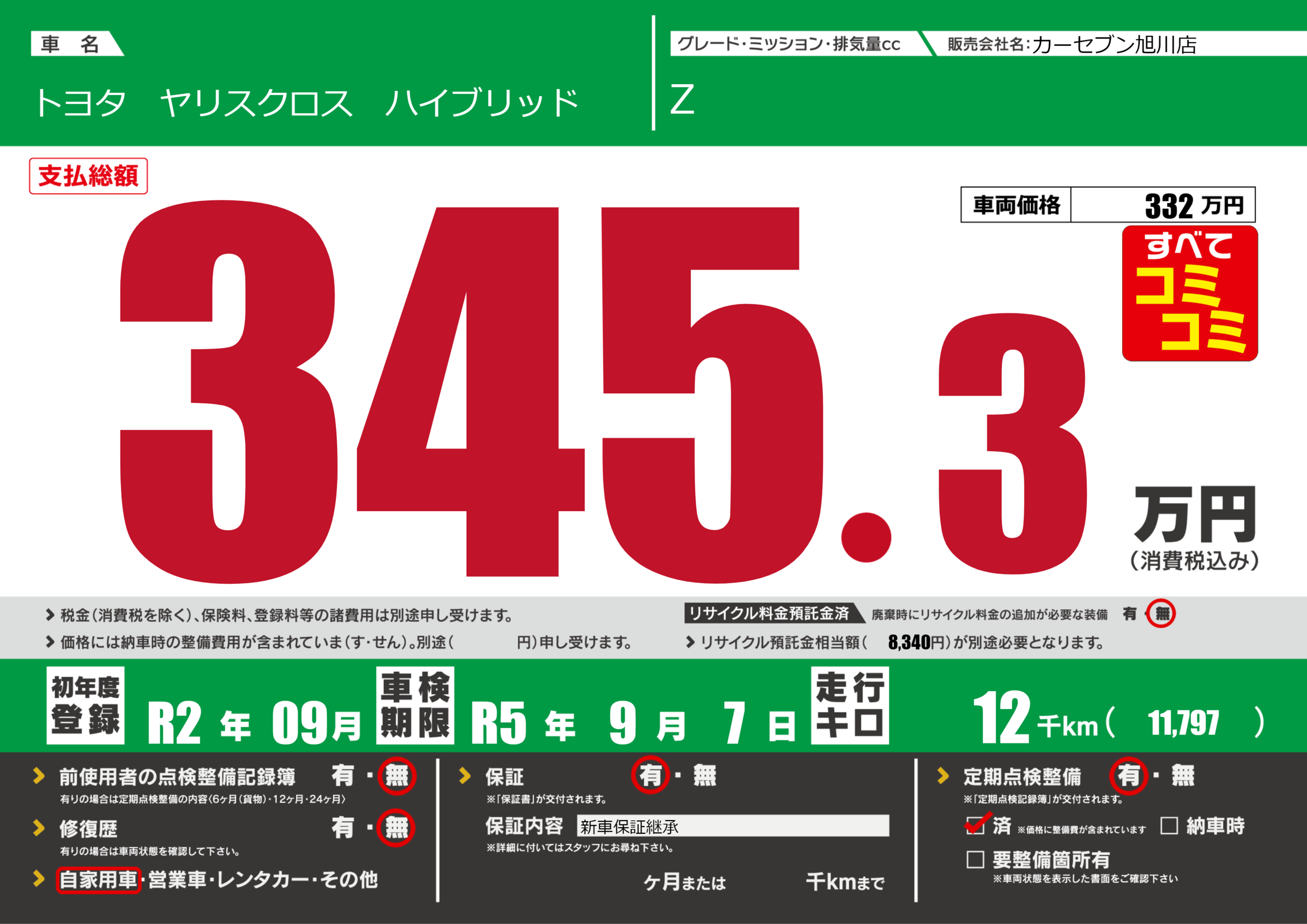 | 定期点検整備 | 定期点検整備あり 定期点検整備済み | ||
