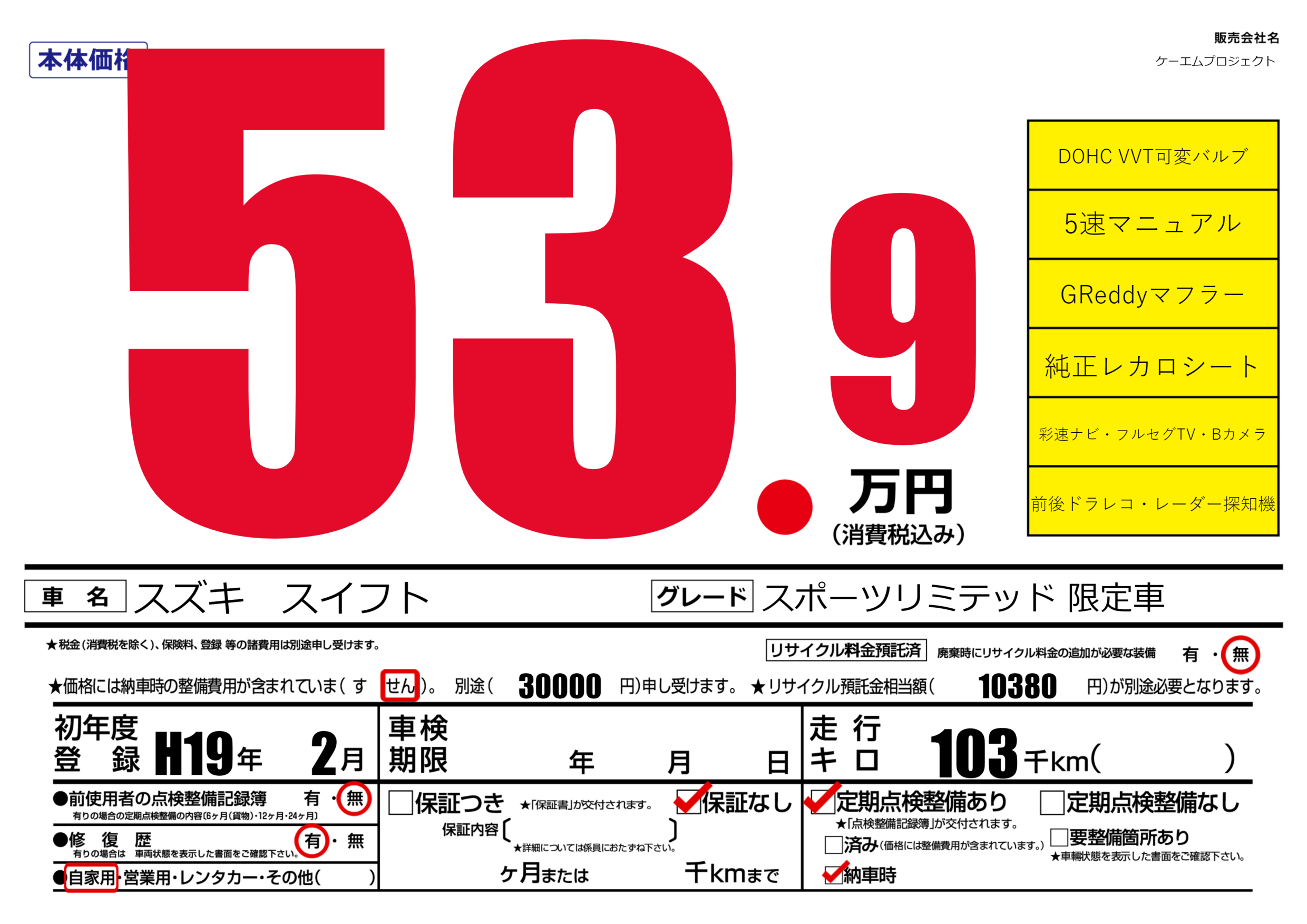 | 車検制限 | - 年 - 月 - 日 | ||