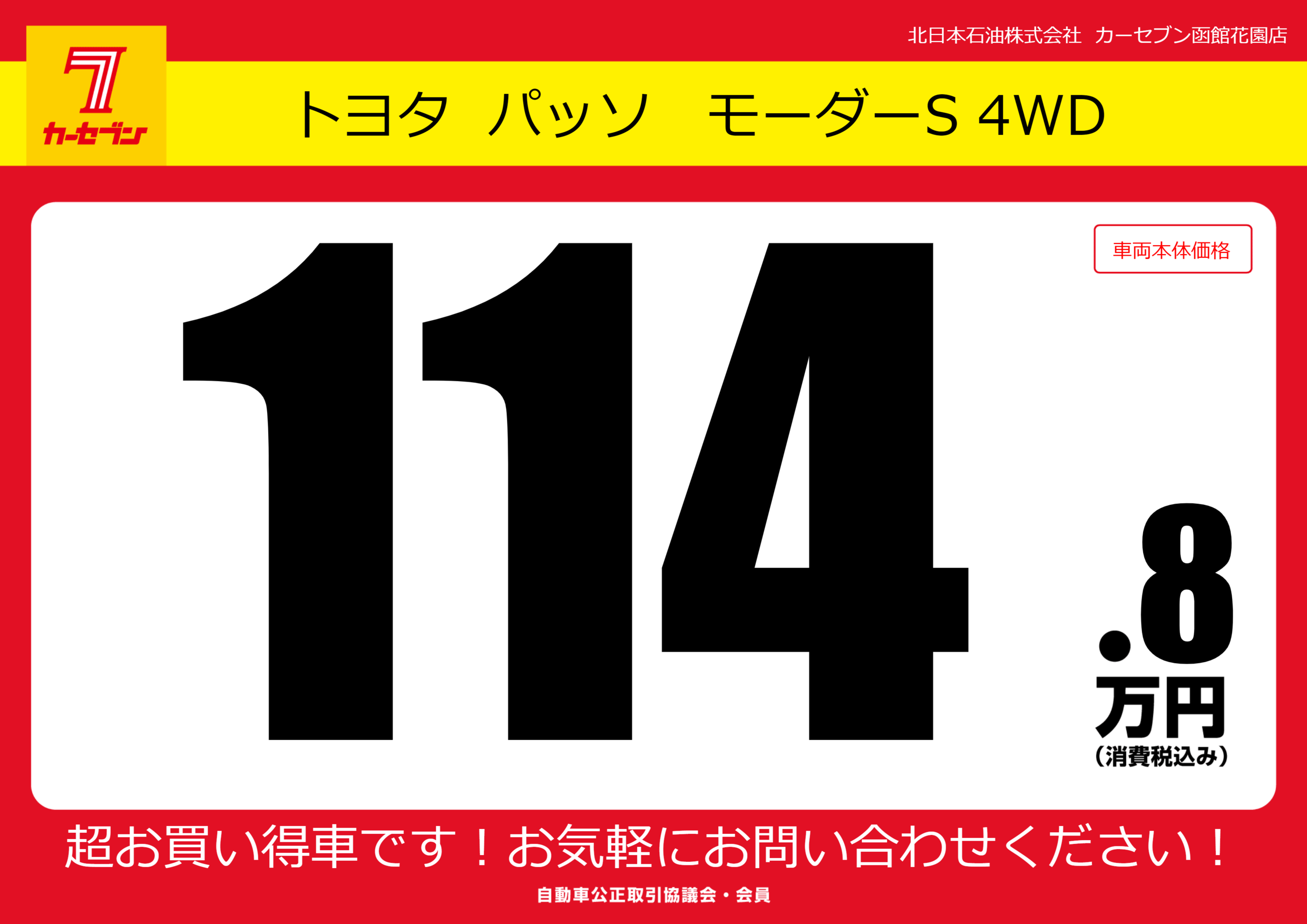 | 車名 | トヨタ パッソ モーダーS 4WD | グレード ミッション 排気量 |