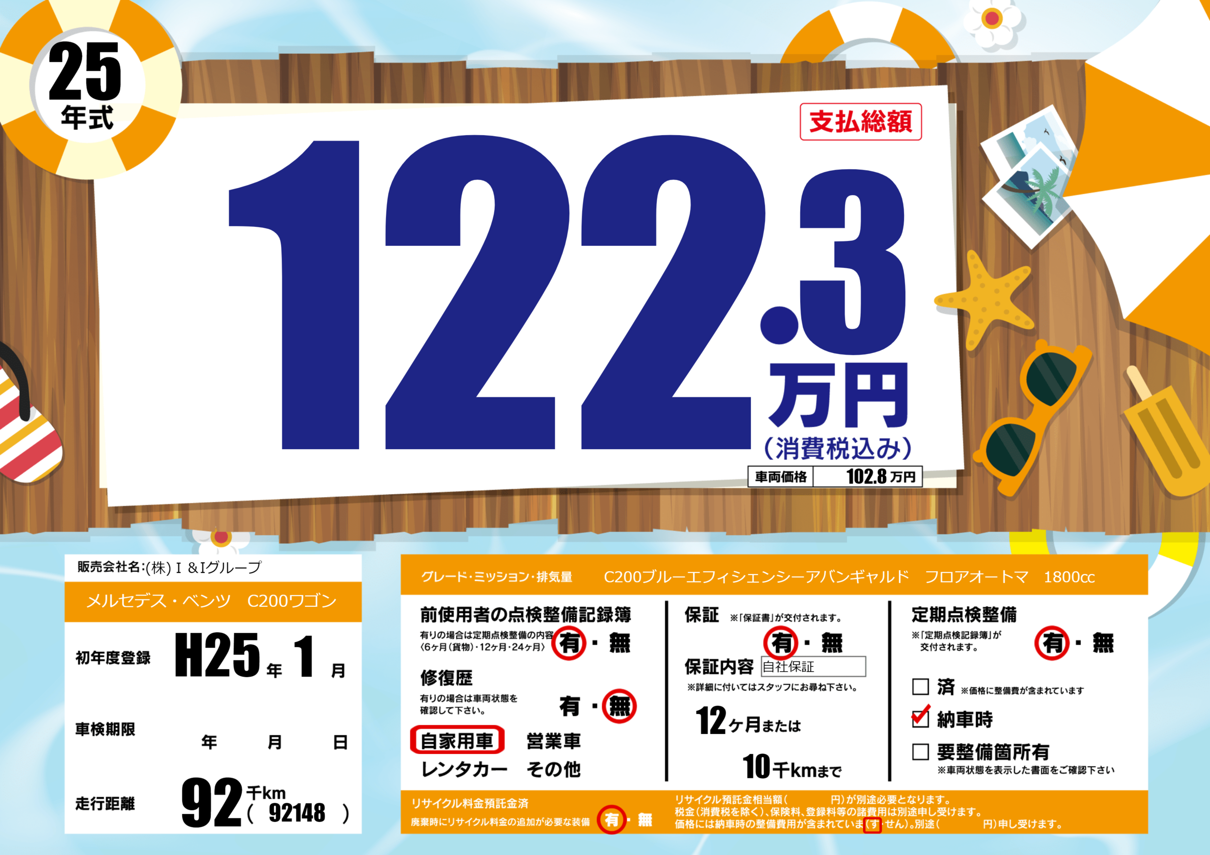 | 車名 | メルセデス・ベンツ C200ワゴン | グレード ミッション 排気量 |