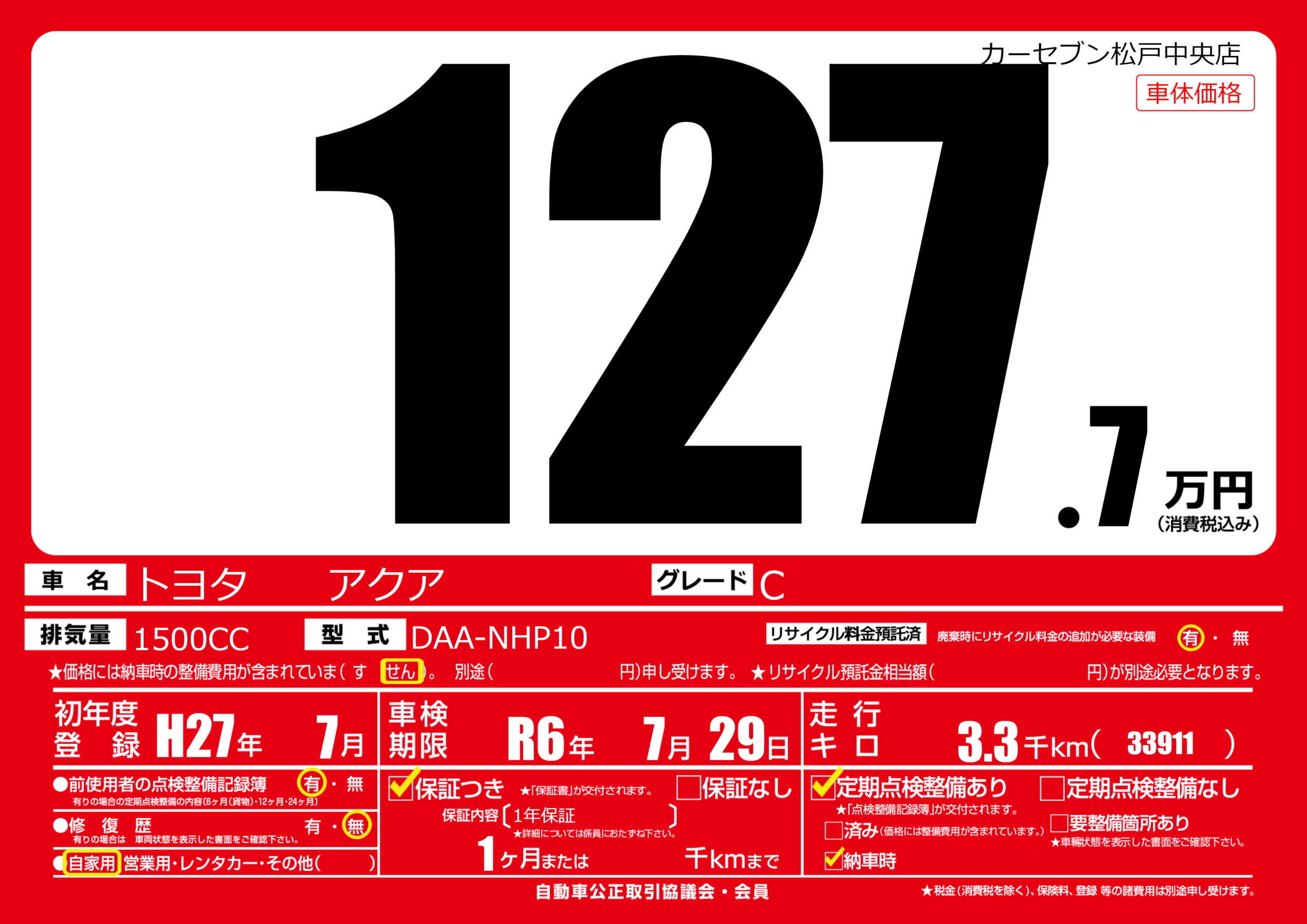 | 初年度登録 | H27年7月 | ||