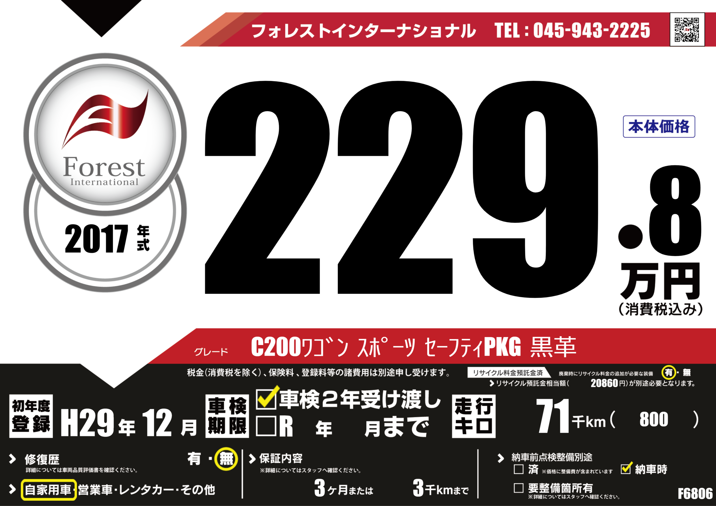 | 走行キロ | 7.1万km | 初年度登録 | H29年12月 |