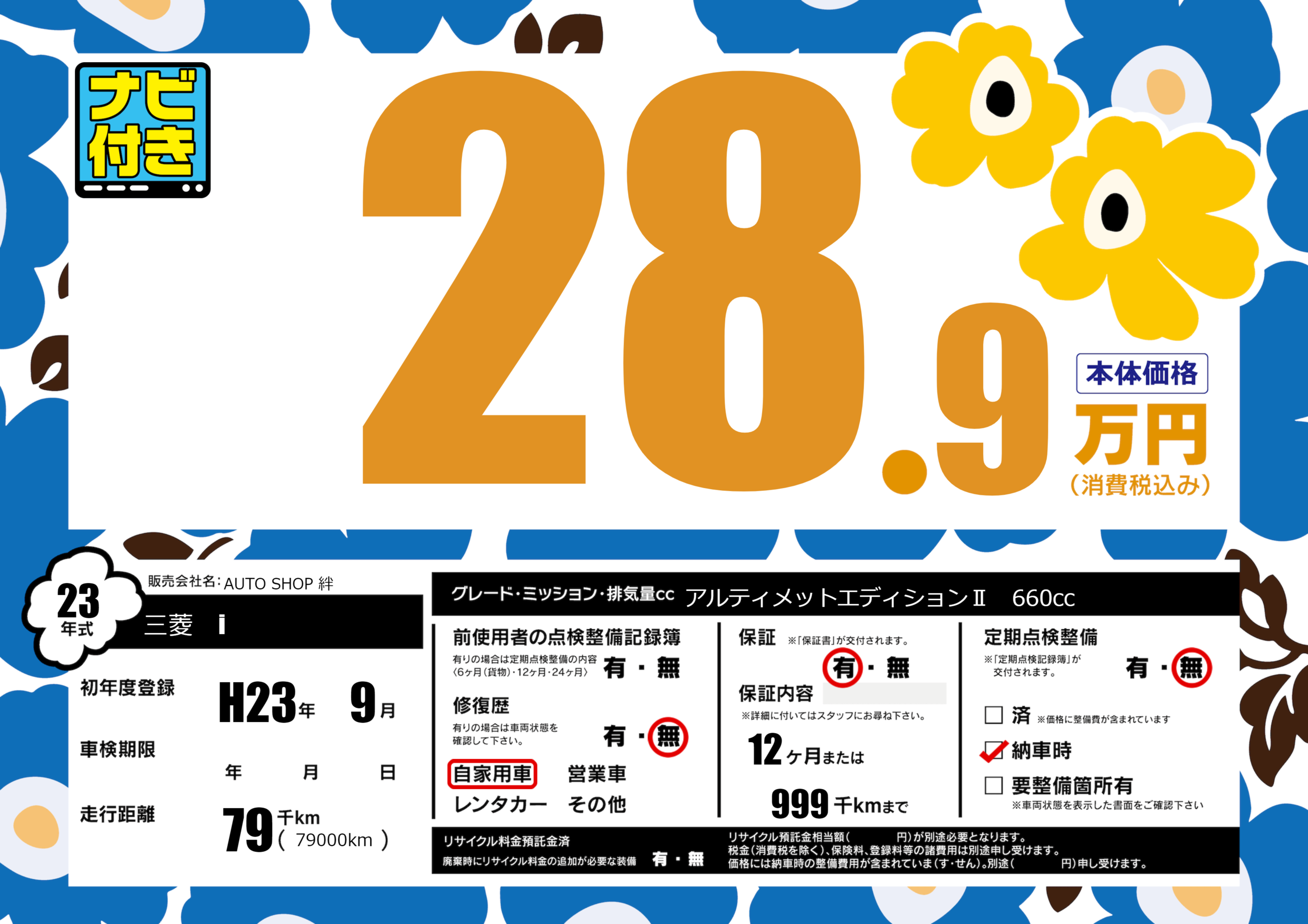 | 走行キロ | 7.9万km | 初年度登録 | H23年9月 |