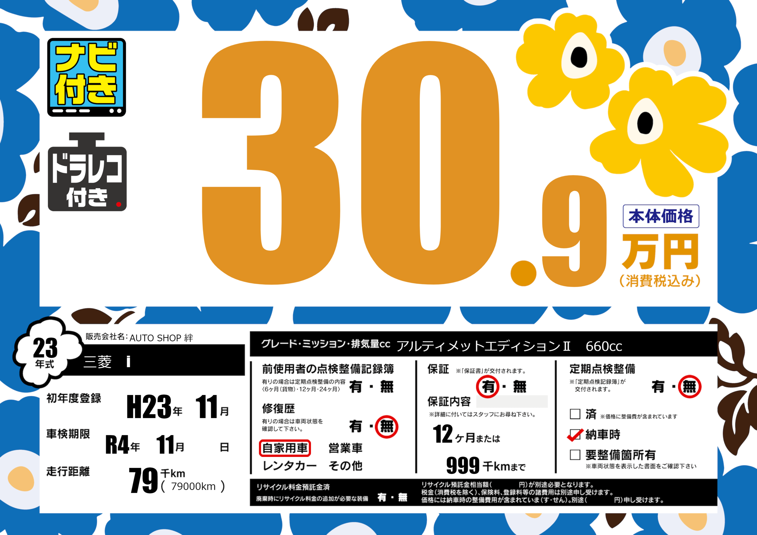 | 走行キロ | 7.9万km | 初年度登録 | H23年11月 |
