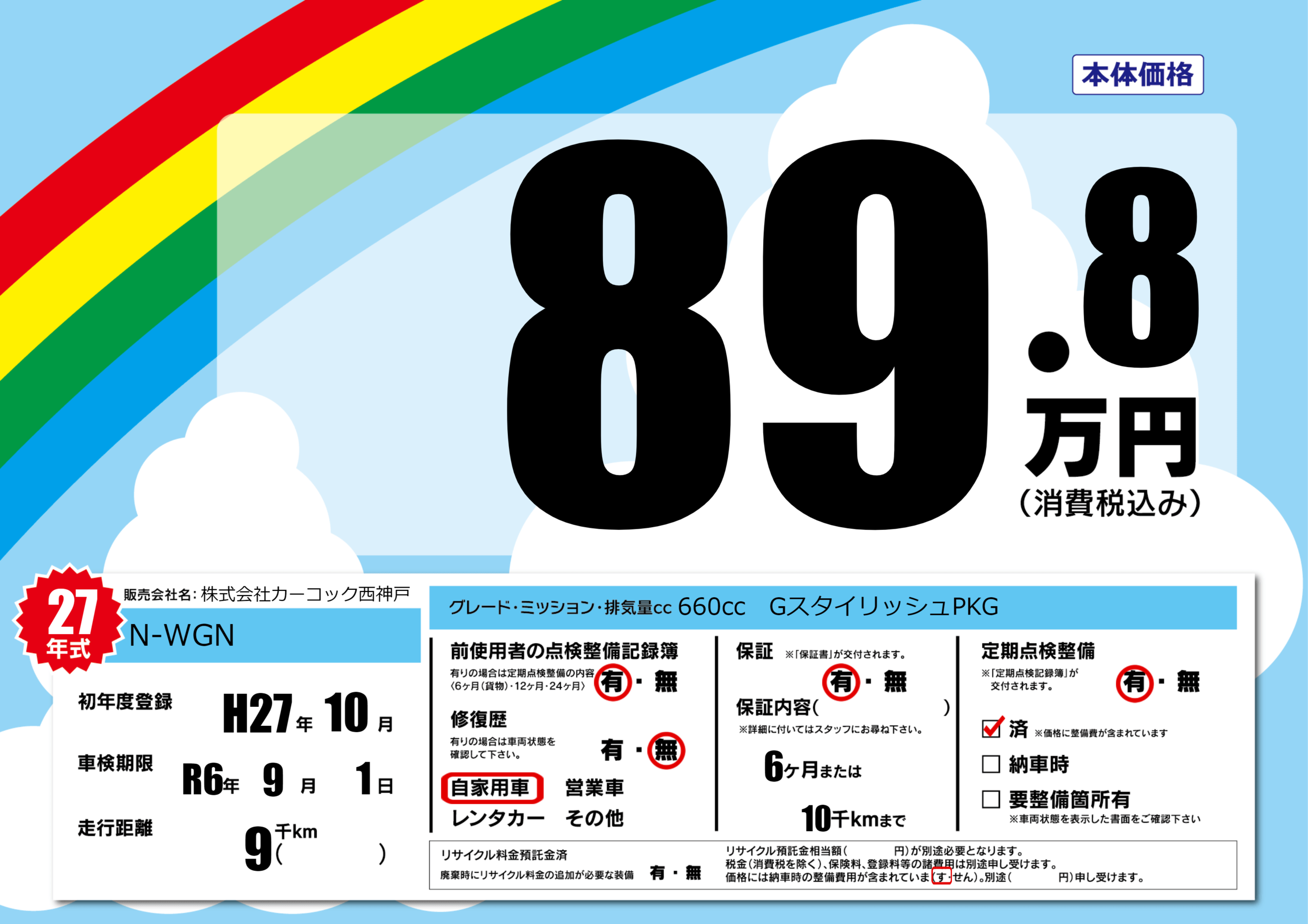 | 車名 | N-WGN | グレード ミッション 排気量 |