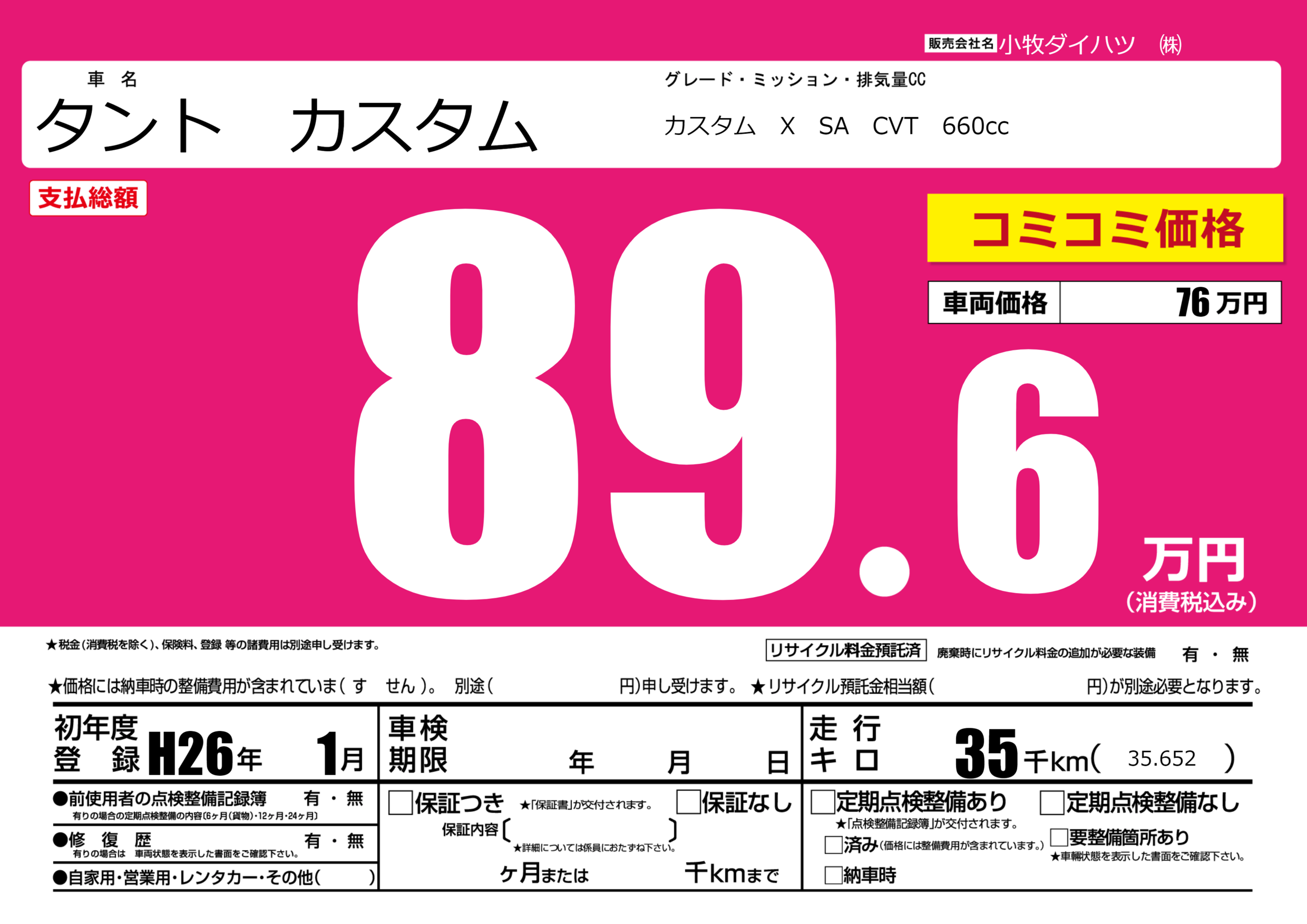 | 走行キロ | 3.5万km | ||