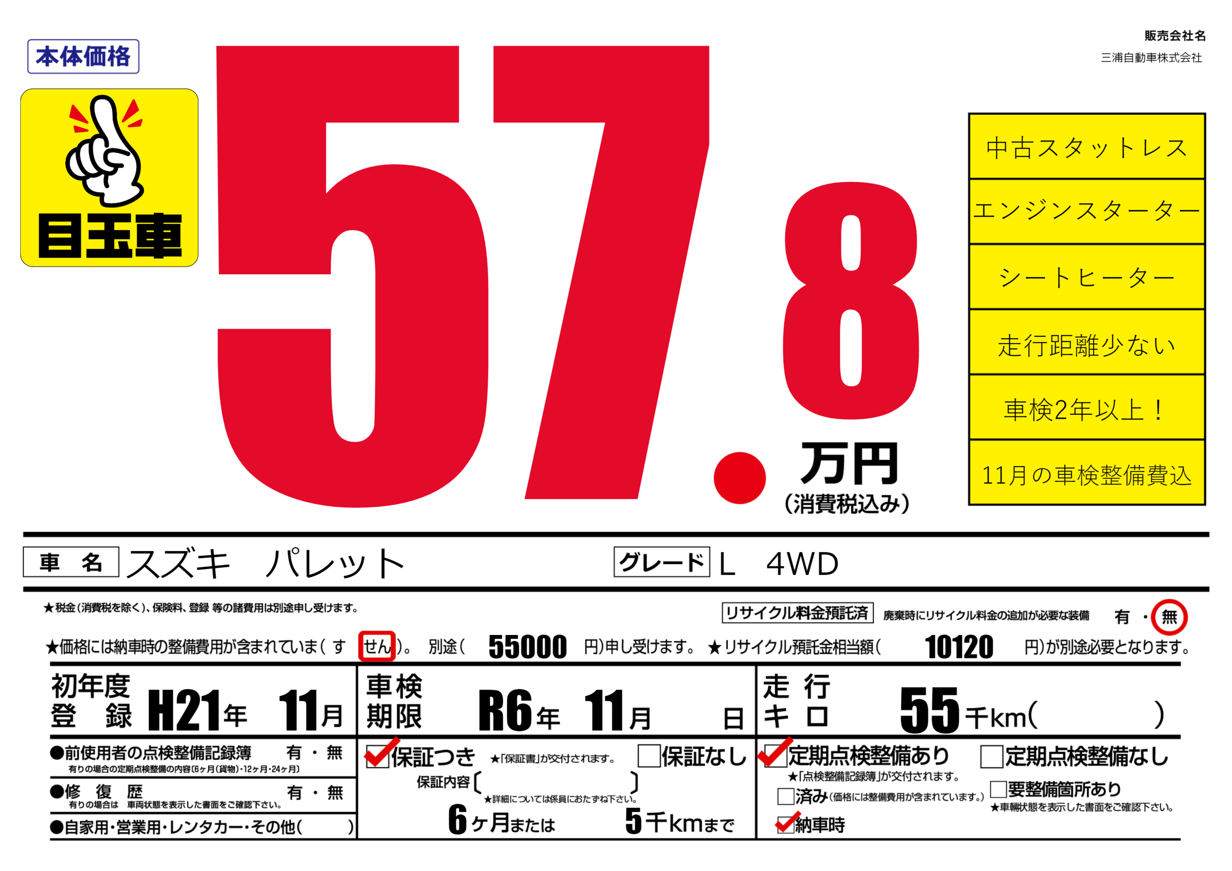保証付き 保証内容(---) 6ヶ月または(5)千kmまで |