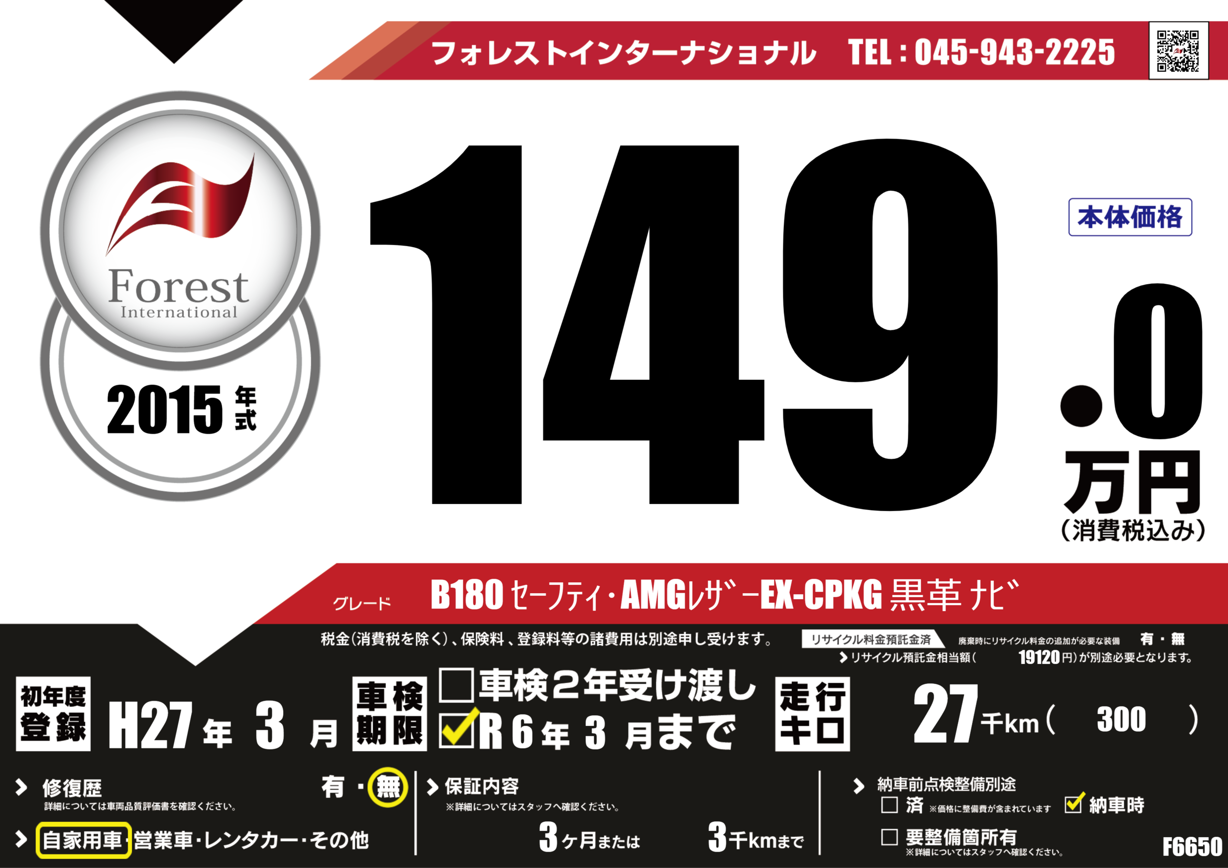 | 走行キロ | 2.7万km | 初年度登録 | H27年3月 |