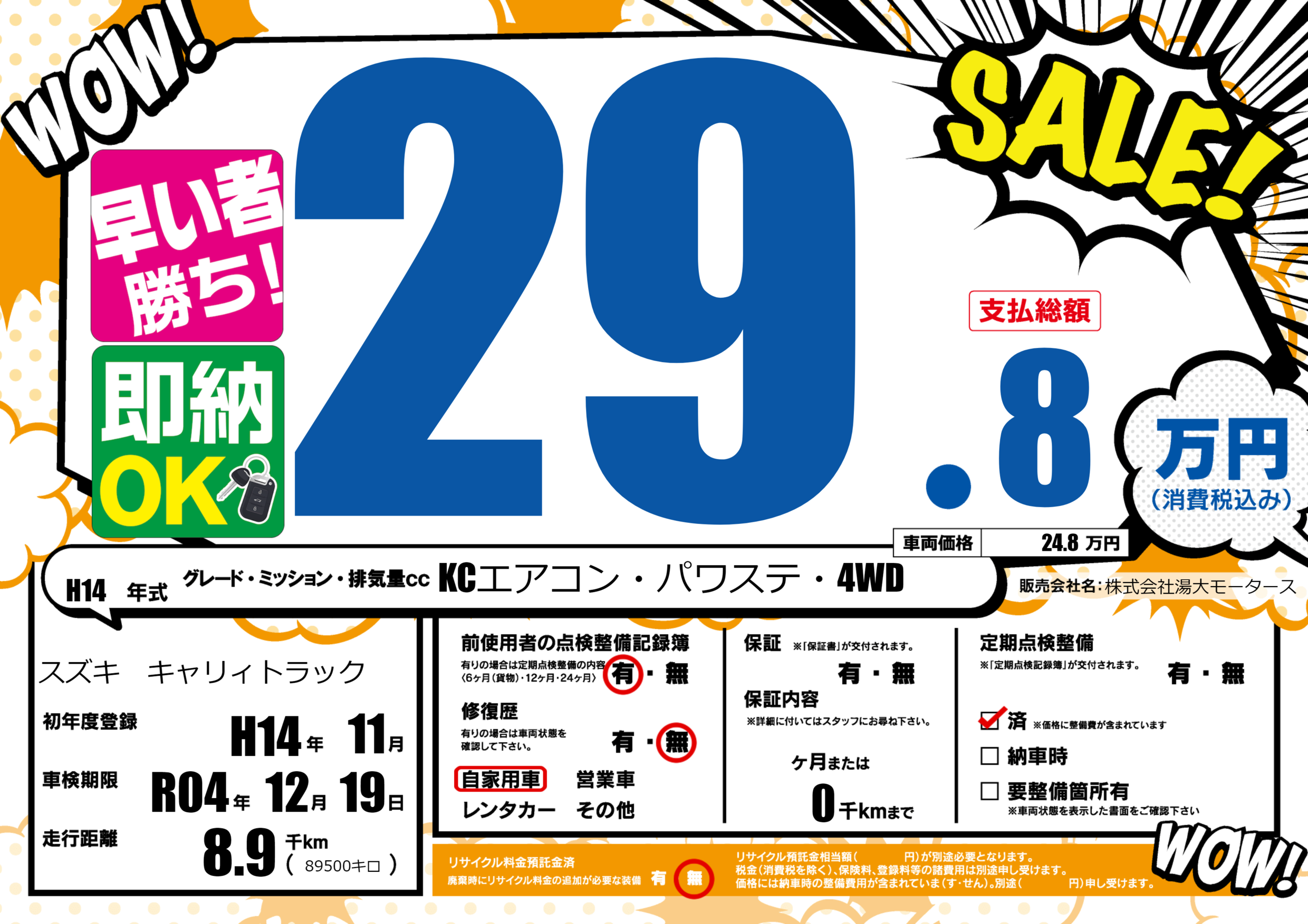 | 走行キロ | 0.8万km | 初年度登録 | H14年11月 |