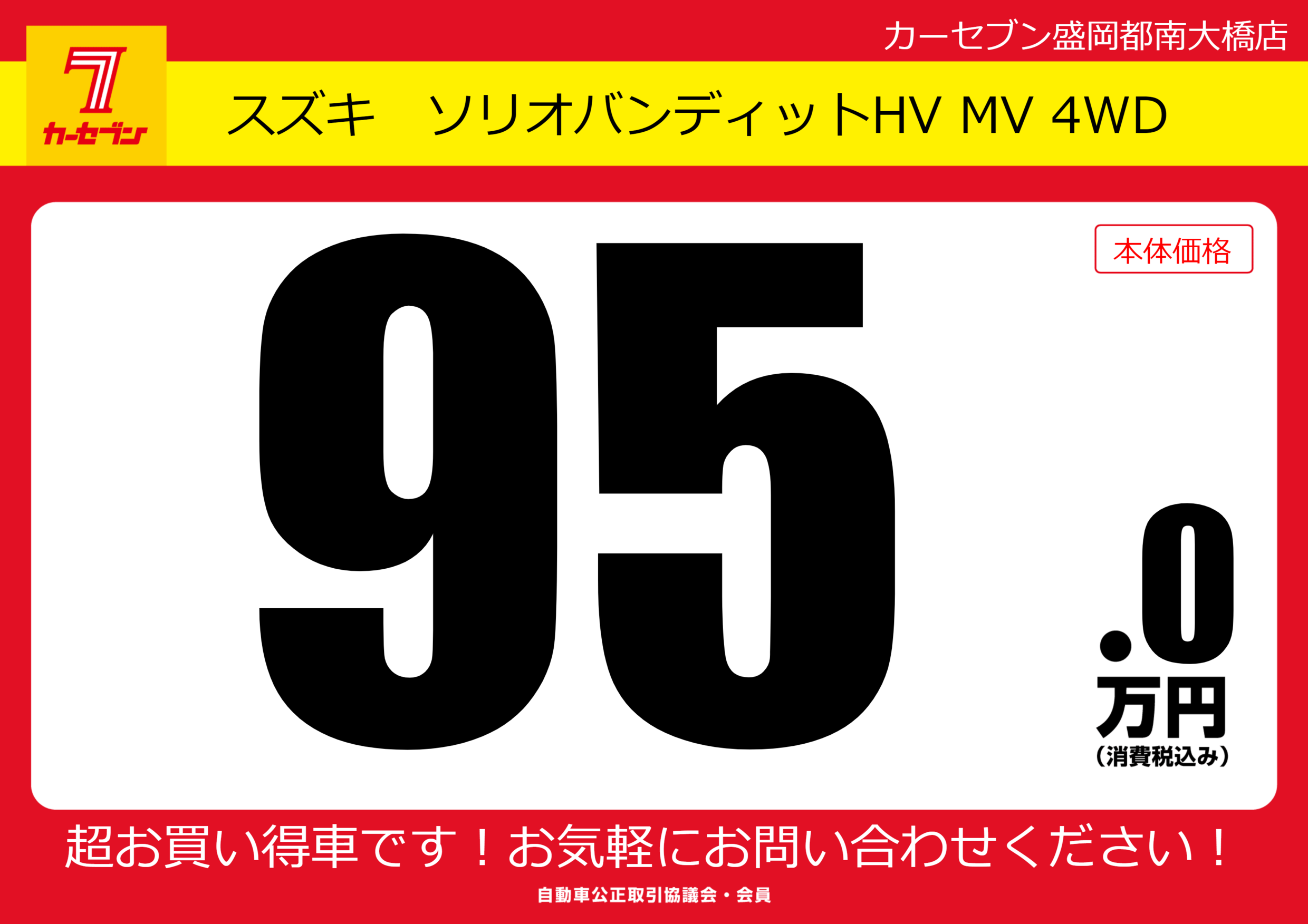 | 車名 | スズキ ソリオバンディットHV MV 4WD | グレード ミッション 排気量 |
