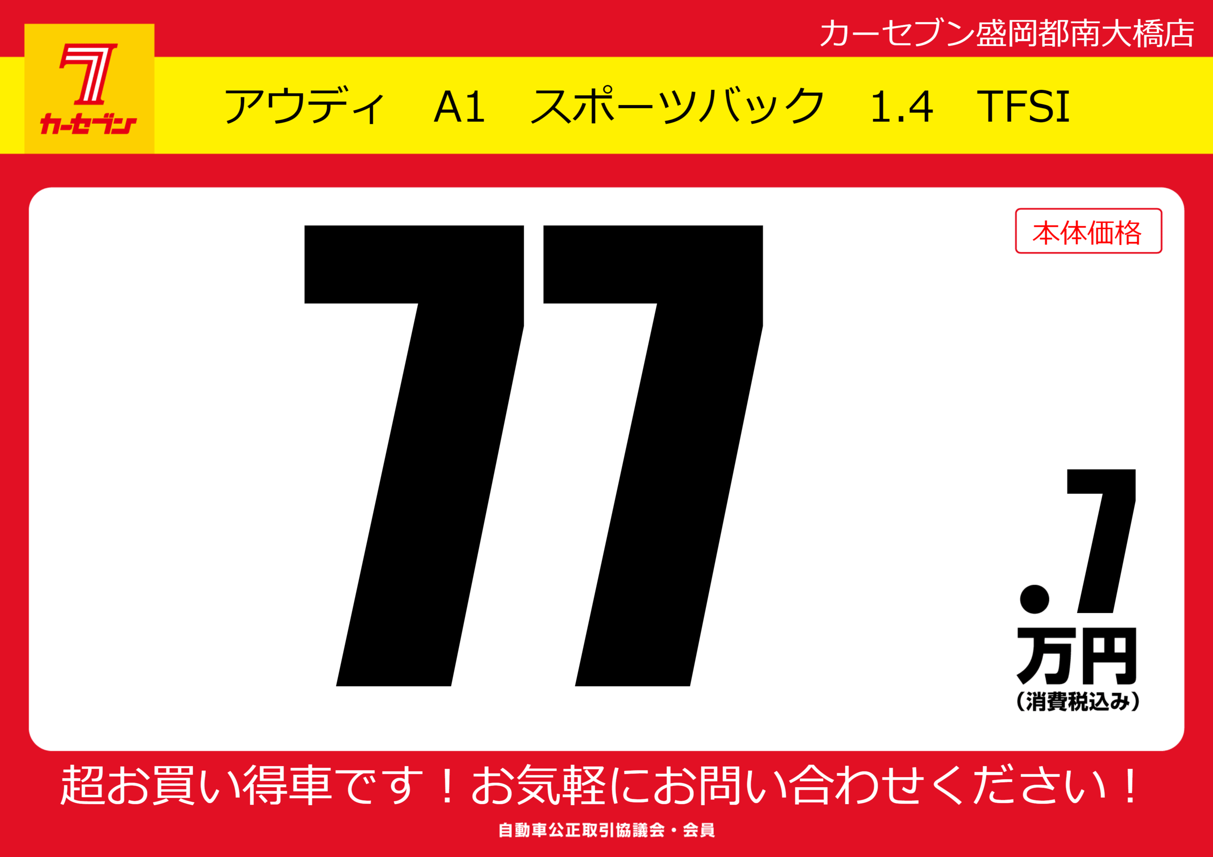 | 車名 | アウディ A1 スポーツバック 1.4 TFSI | グレード ミッション 排気量 |