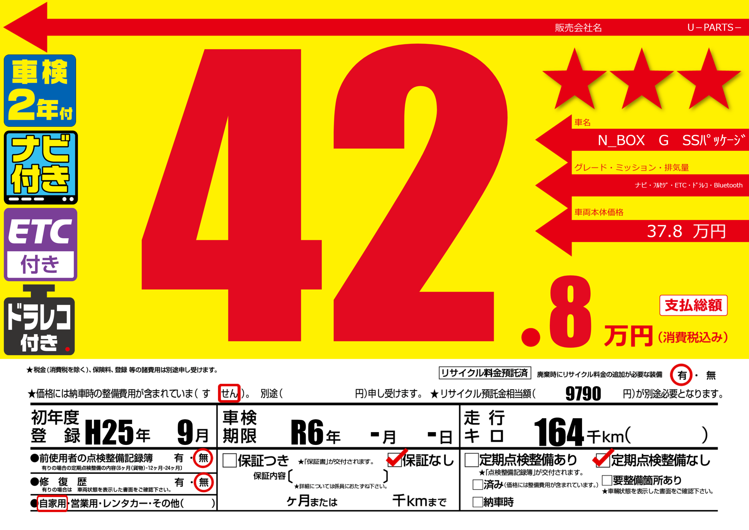 | 車名 | N_BOX G SSパッケージ | グレード ミッション 排気量 |