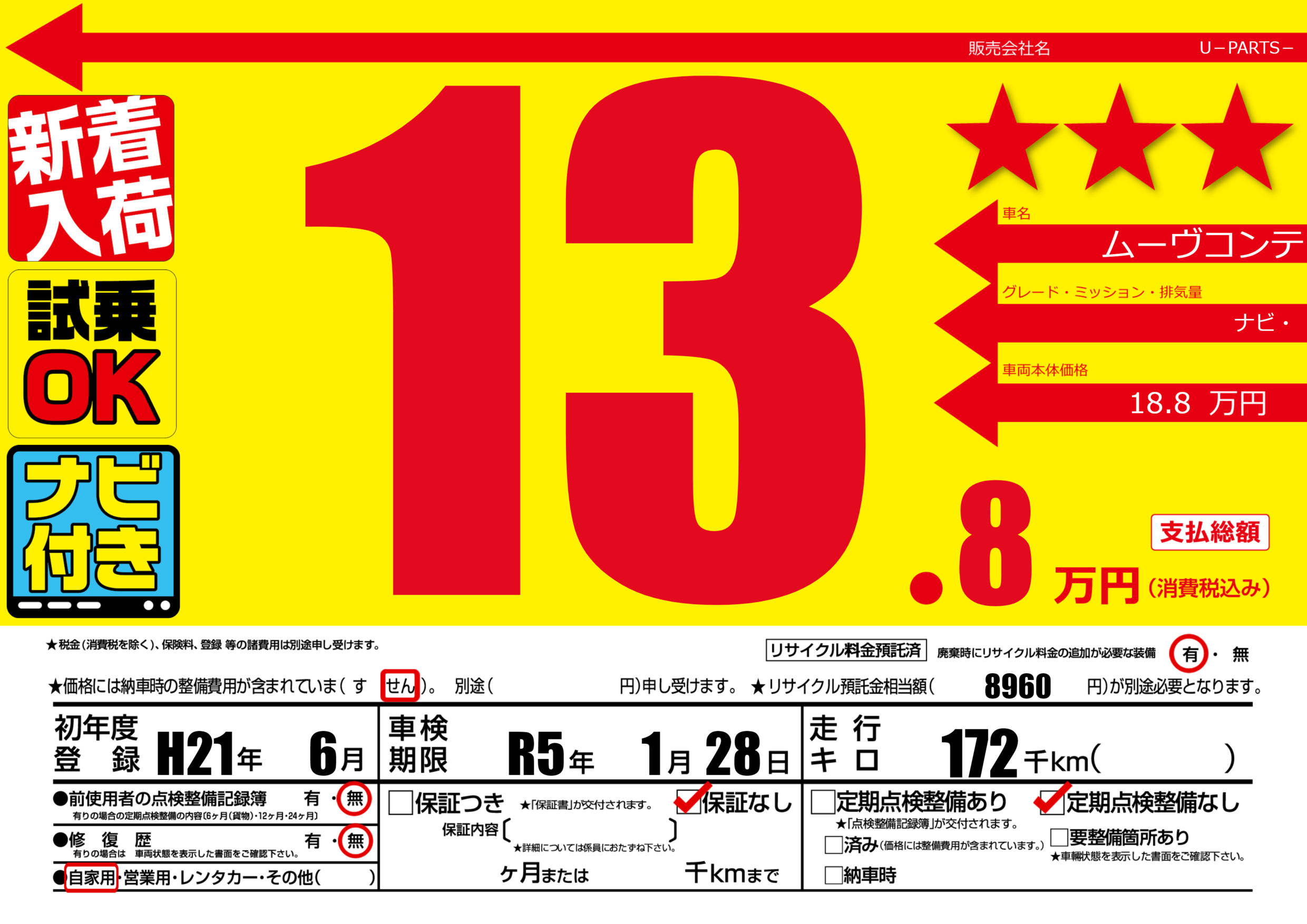 | 車名 | ムーヴコンテ | グレード ミッション 排気量 |