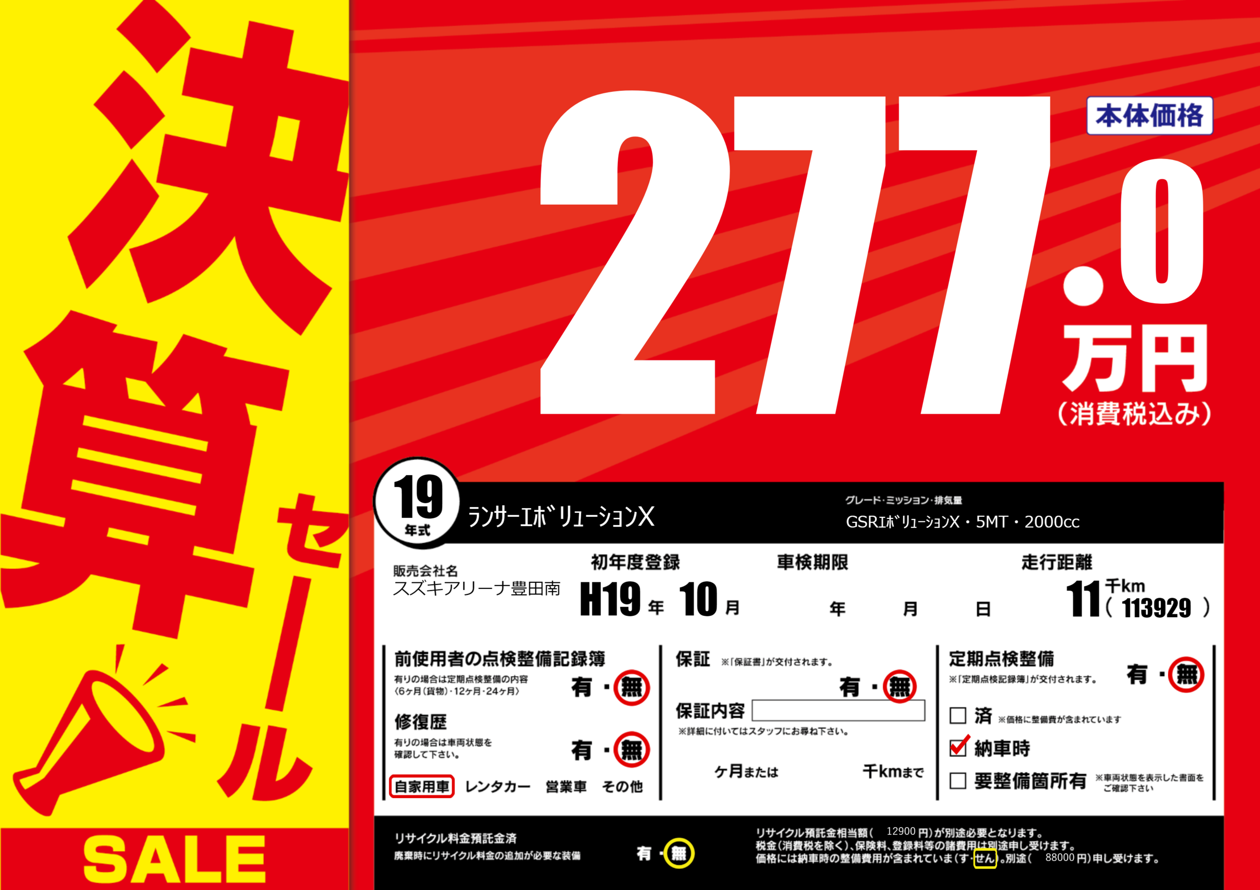 | 定期点検整備 | 定期点検整備なし 納車時あり | ||