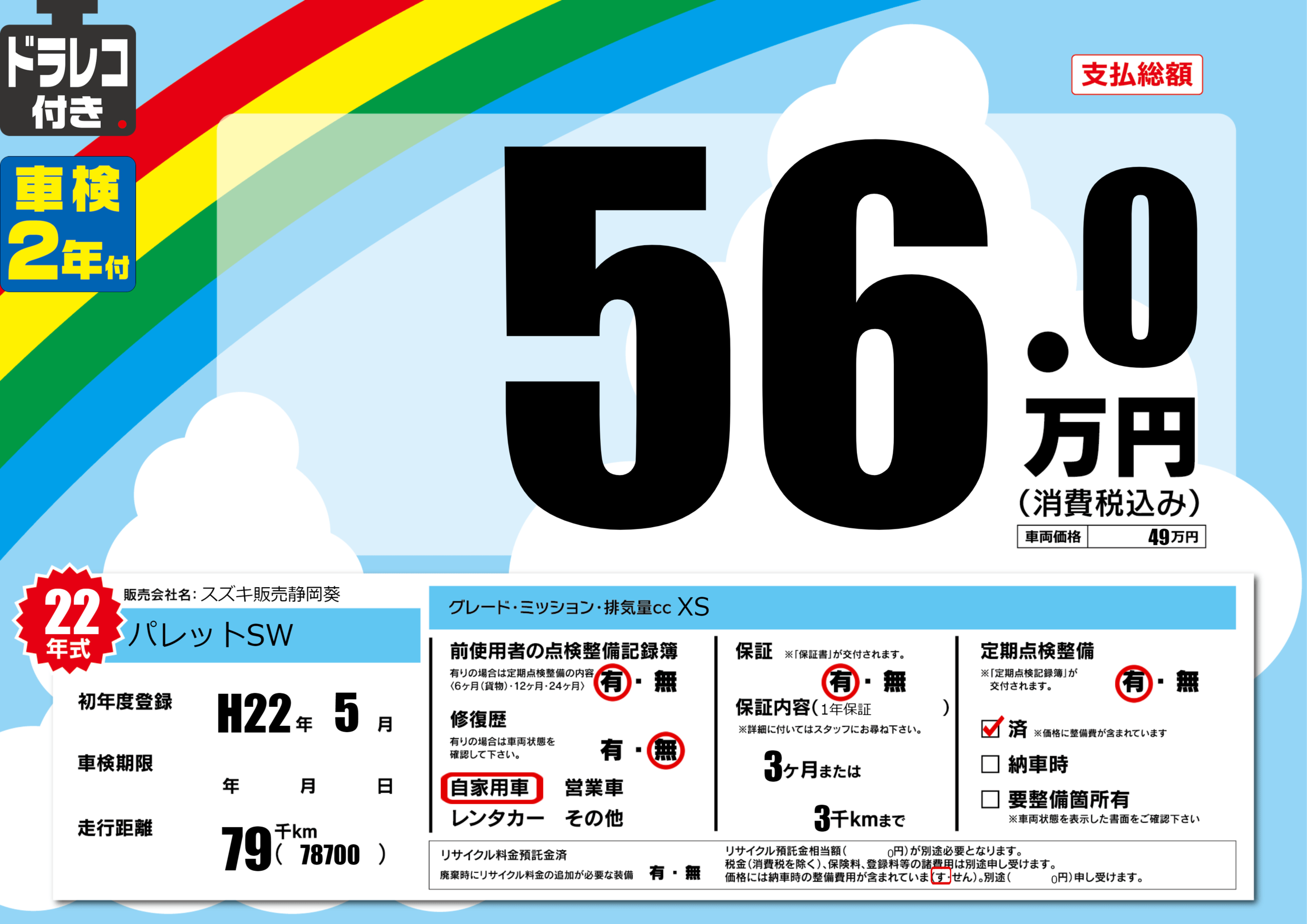 | 車名 | パレットSW | グレード ミッション 排気量 |