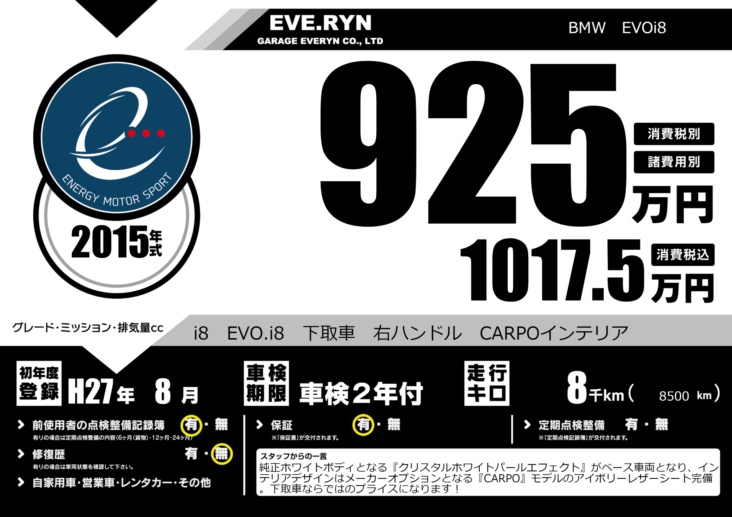 i8 EVO.i8 下取車 右ハンドル CARPOインテリア |